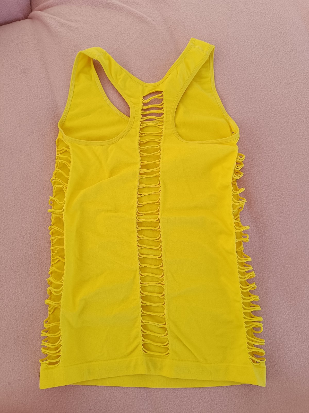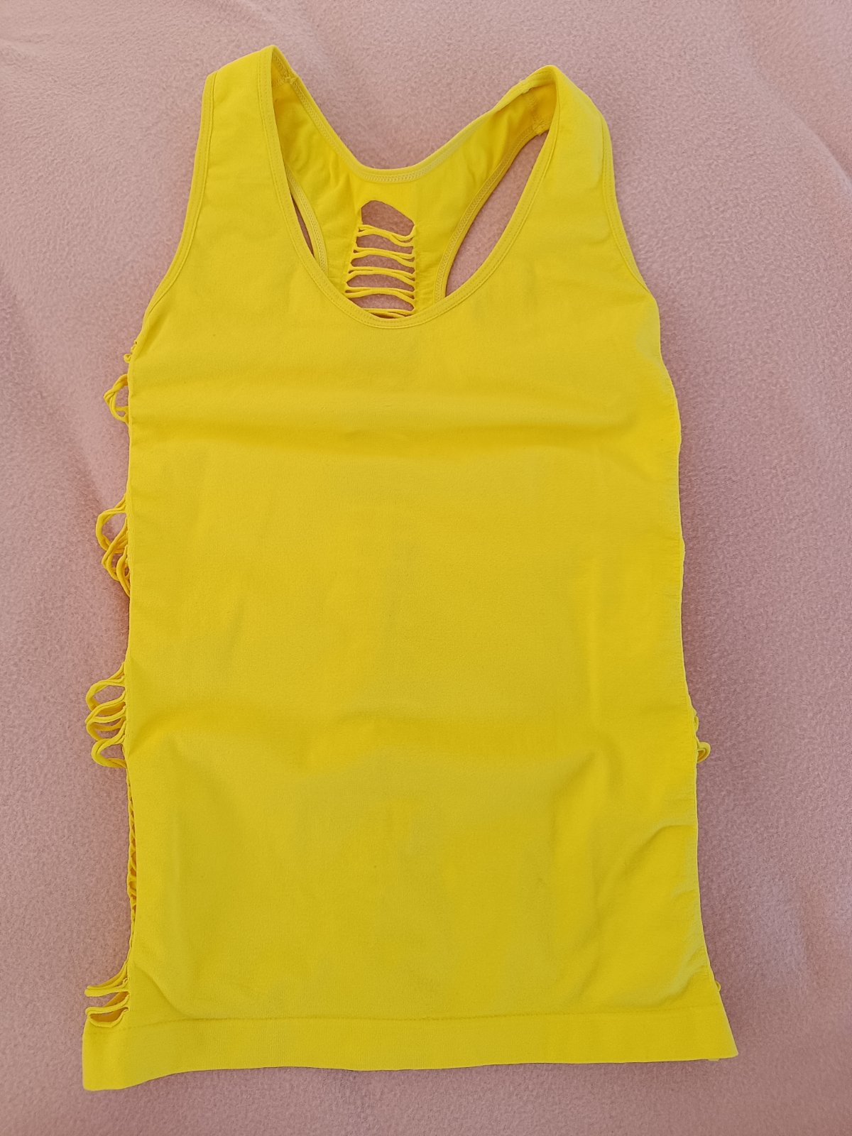Predám žlté tielko, elastické, veľkosť xs, rozmery: dĺžka od ramienok 55cm, cena 8€+ poštovné, je možný aj osobný odber v Ba