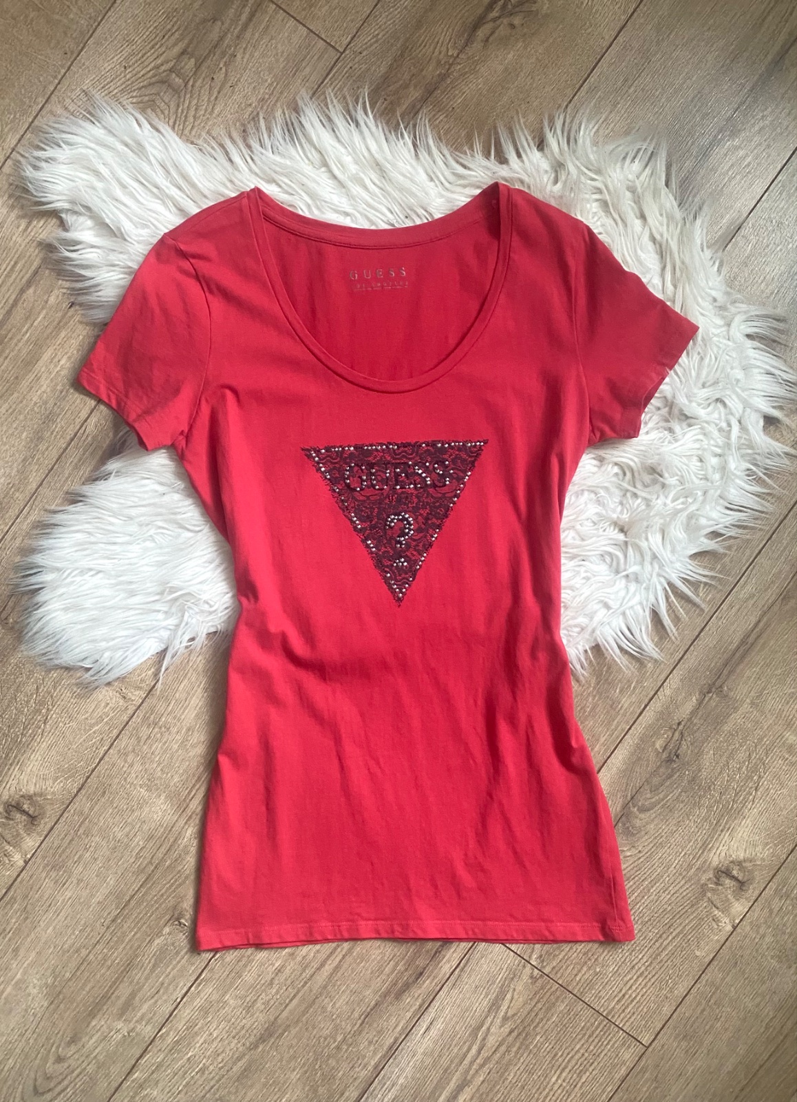 Nádherné tričko Guess, len oprane, je mi veľké lebo som schudla. Kupované na answear.sk za 26.53€. Originál. Jemnucke mäkkučké tričko so strasovym logom na hrudi.
