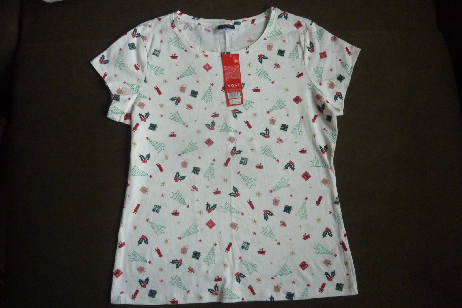Pekné vianočné tričko s krátkym rukávom, 100% bavlna, veľkosť XL. Stav ako na fotkách. Pre dámy, alebo dievčatá.