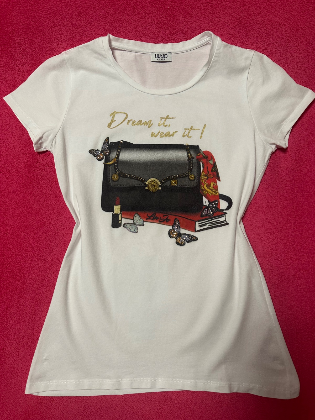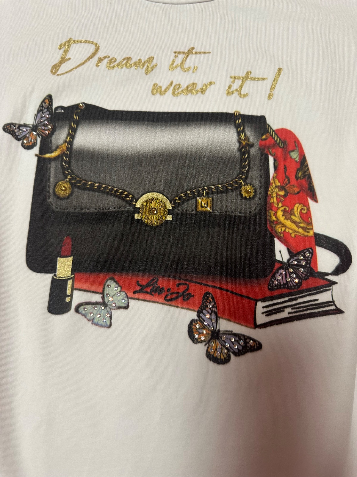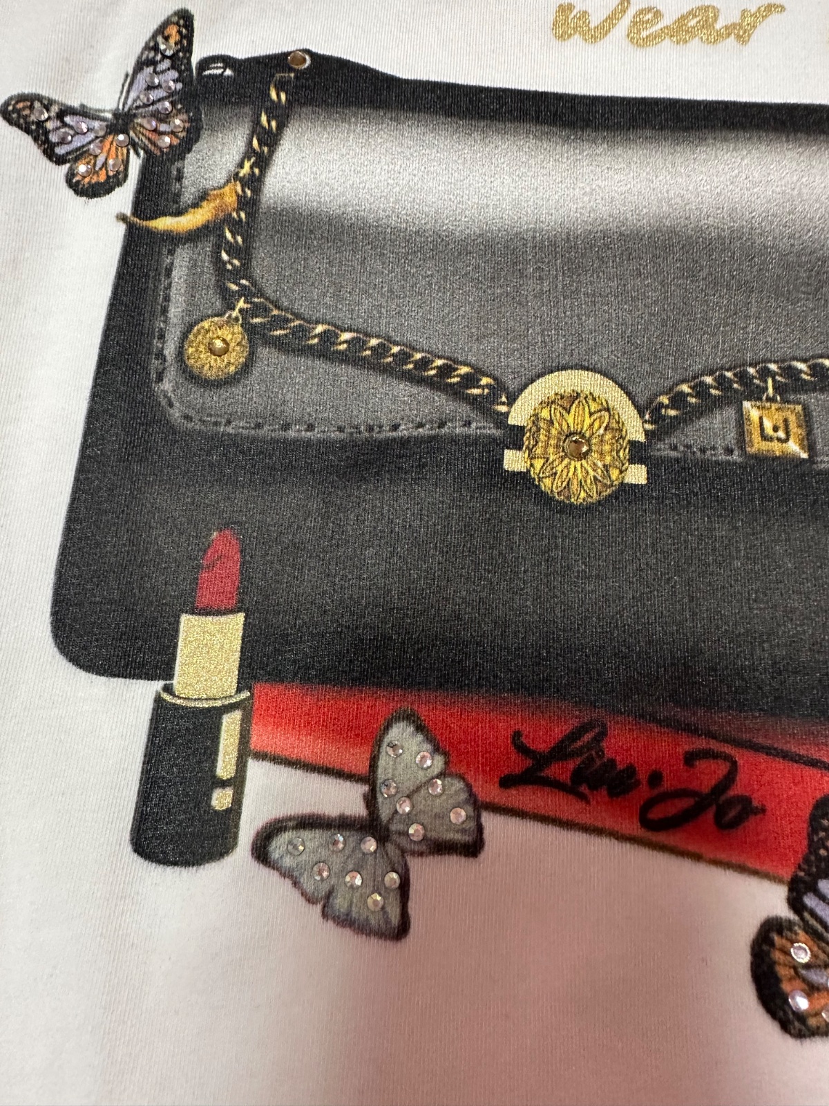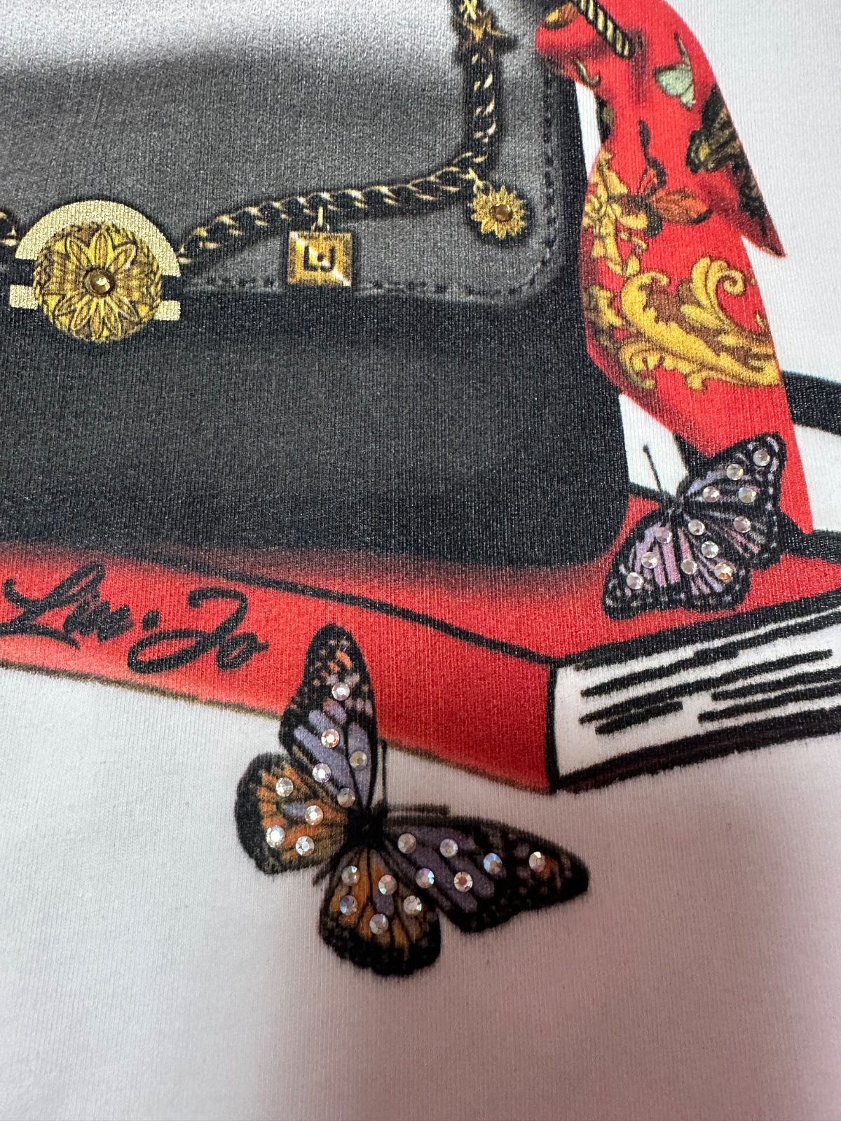 Predám nepoužité biele tričko kabelka s motýlmi a s kamienkami zn. LIU JO originál