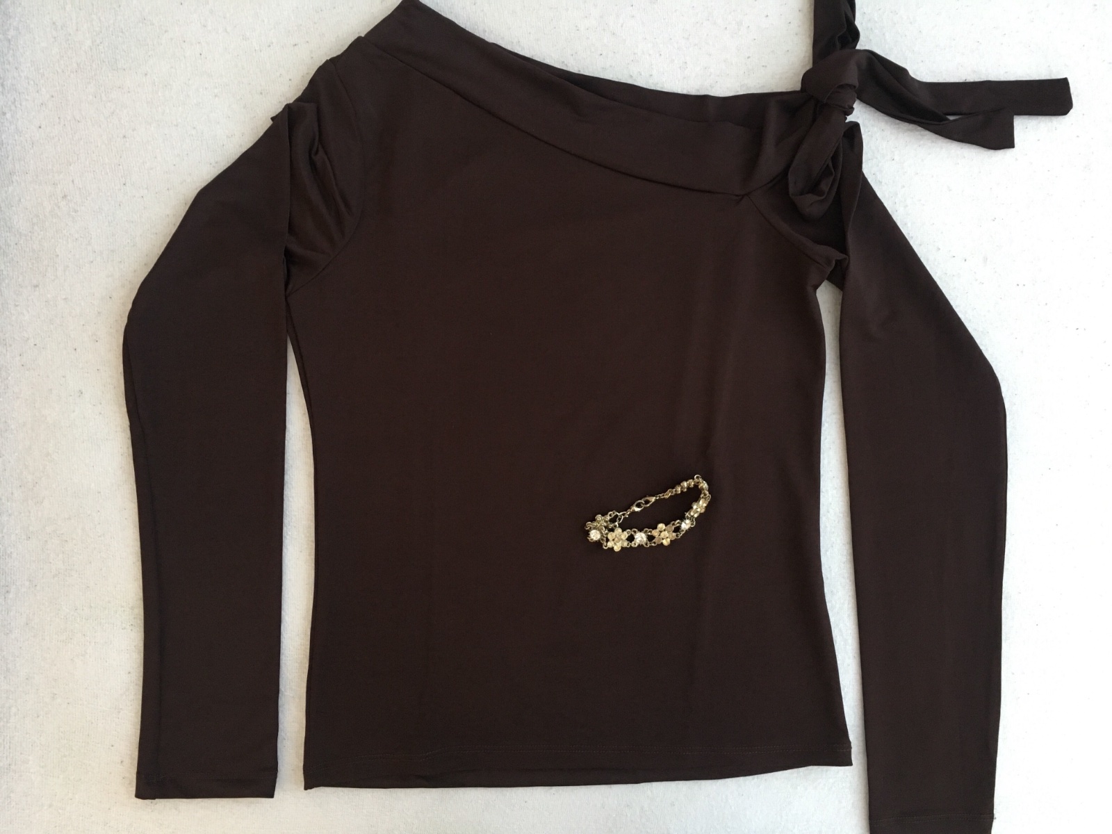Tričko s dlhým rukávom a ozdobným náramkom, dá sa nosiť na ruke aj na tričku ako ramienko. Tričko je iba odskúšané, nenosené.