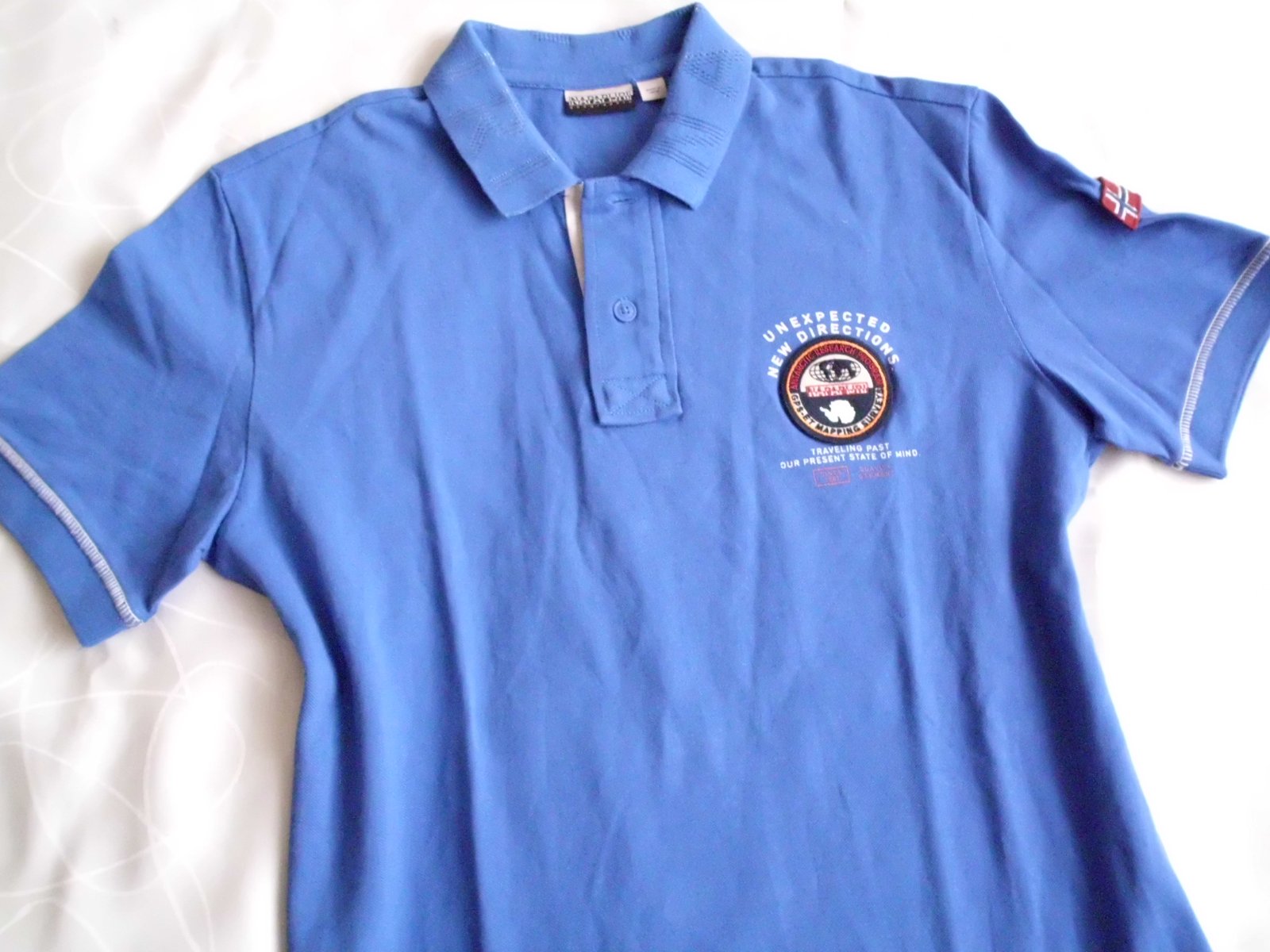 Predám slim pánske pólo tričko Napapijri vel. M, šírka 53 cm, dĺžka 74 cm, rukáv 22 cm, stredne modrá farba ako na foto, príjemný materiál, pár x oblečené ,top stav ...