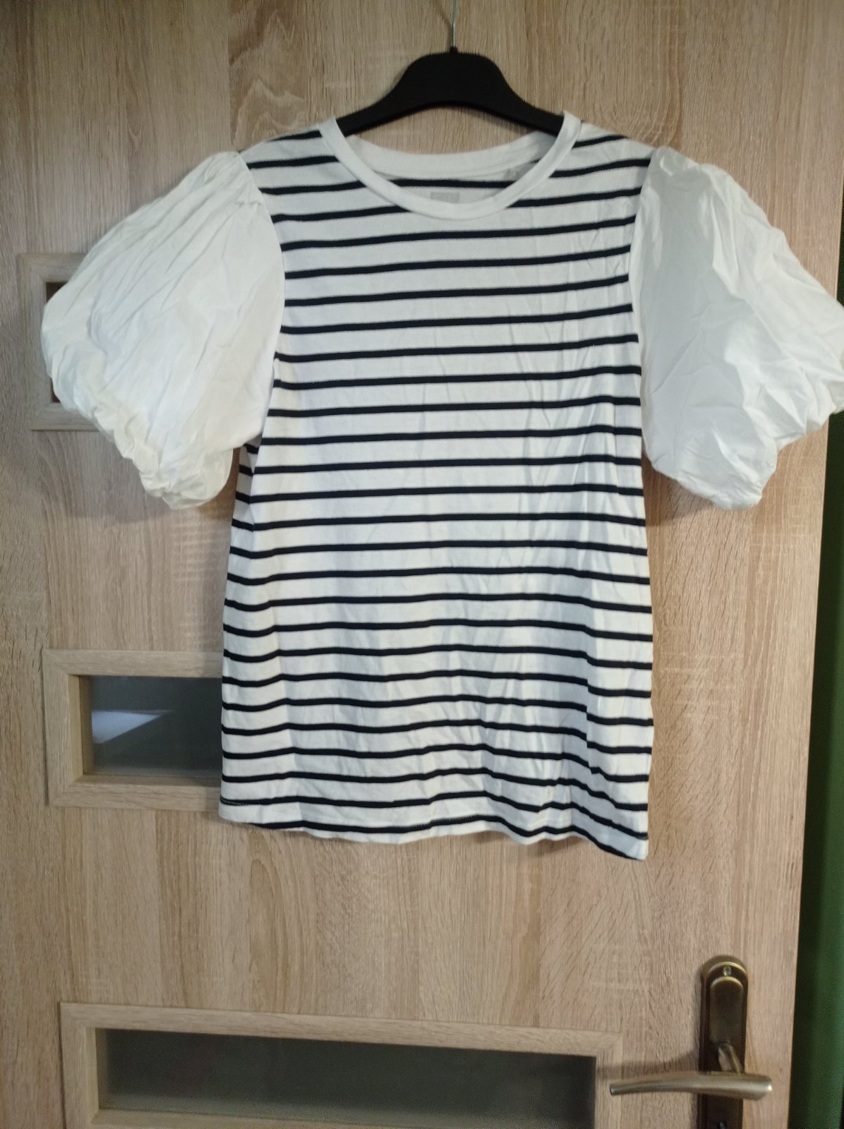 Krásne pásikavé tričko s puff rukávmi.Velkost XS/S.Cena 5€+pošta.