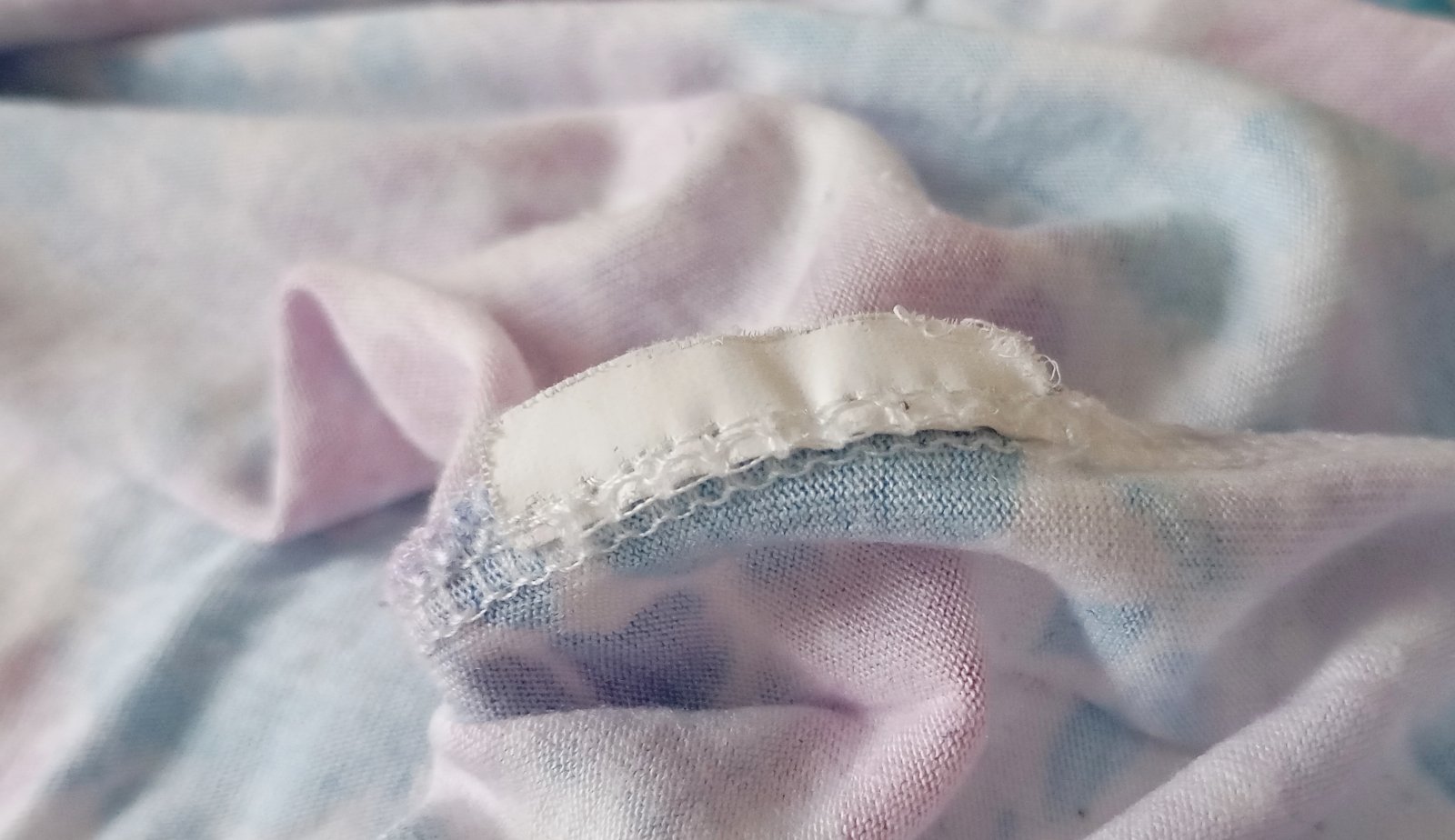 Štítok z vnútornej strany bol odstrihnutý; bohužiaľ nemám žiadne informácie o značke ani materiálovom zložení. Látka je ale veľmi tenká, ľahučká, jemná a príjemná na dotyk.