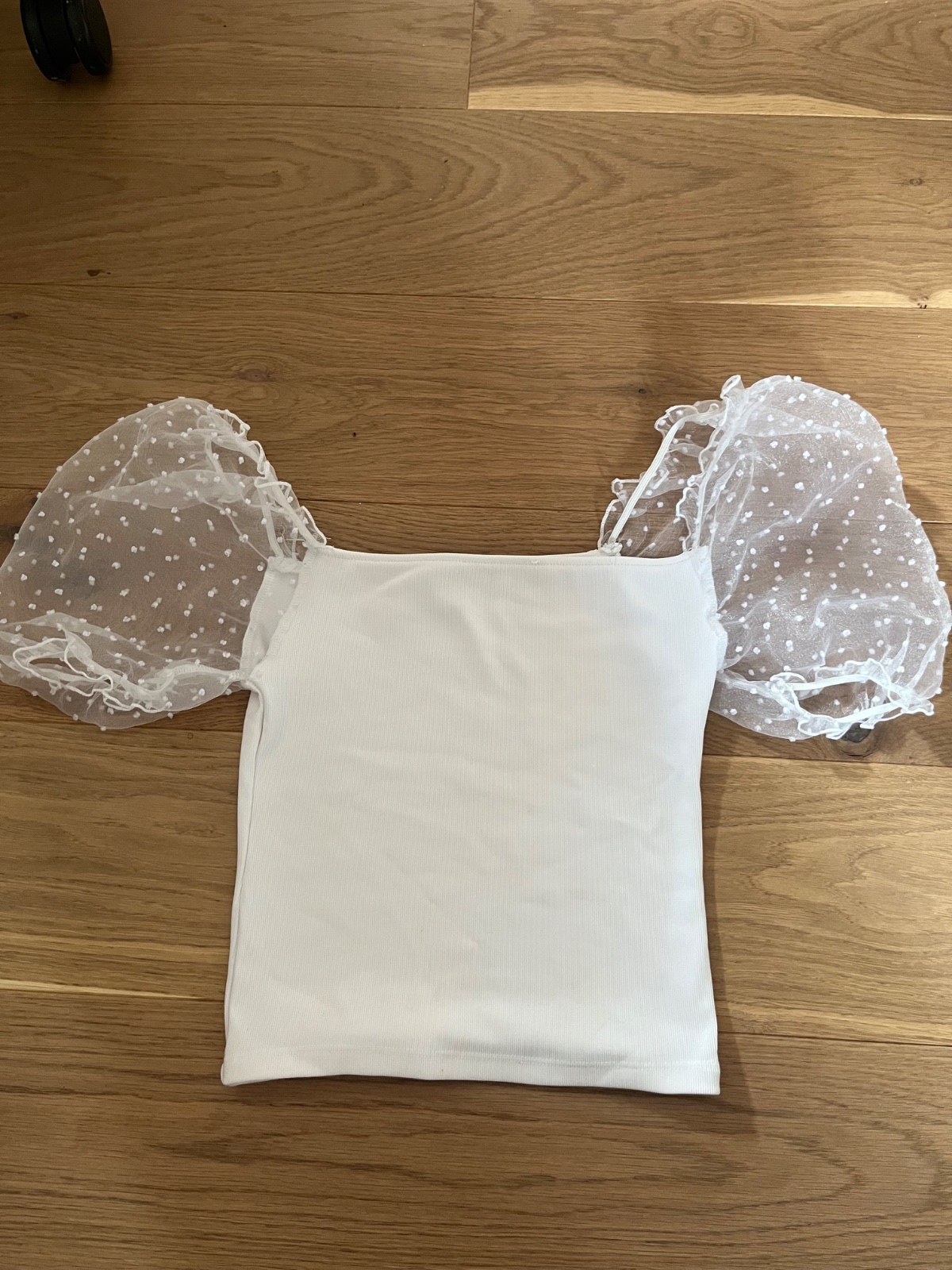 Krásne tričko s balónovým efektom rukávov. Croptop