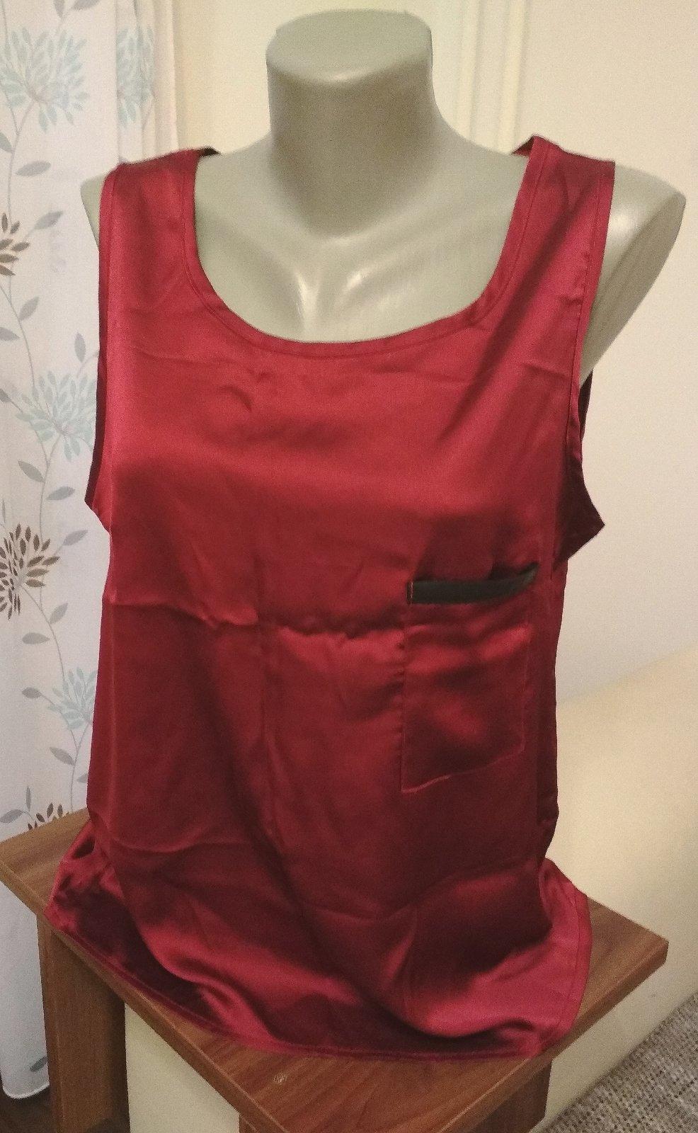 Saténový lesklý top s vreckom. Veľkosť L. Rozmery: dĺžka vpredu 62cm/vzadu 69cm, pesia 2x50cm.