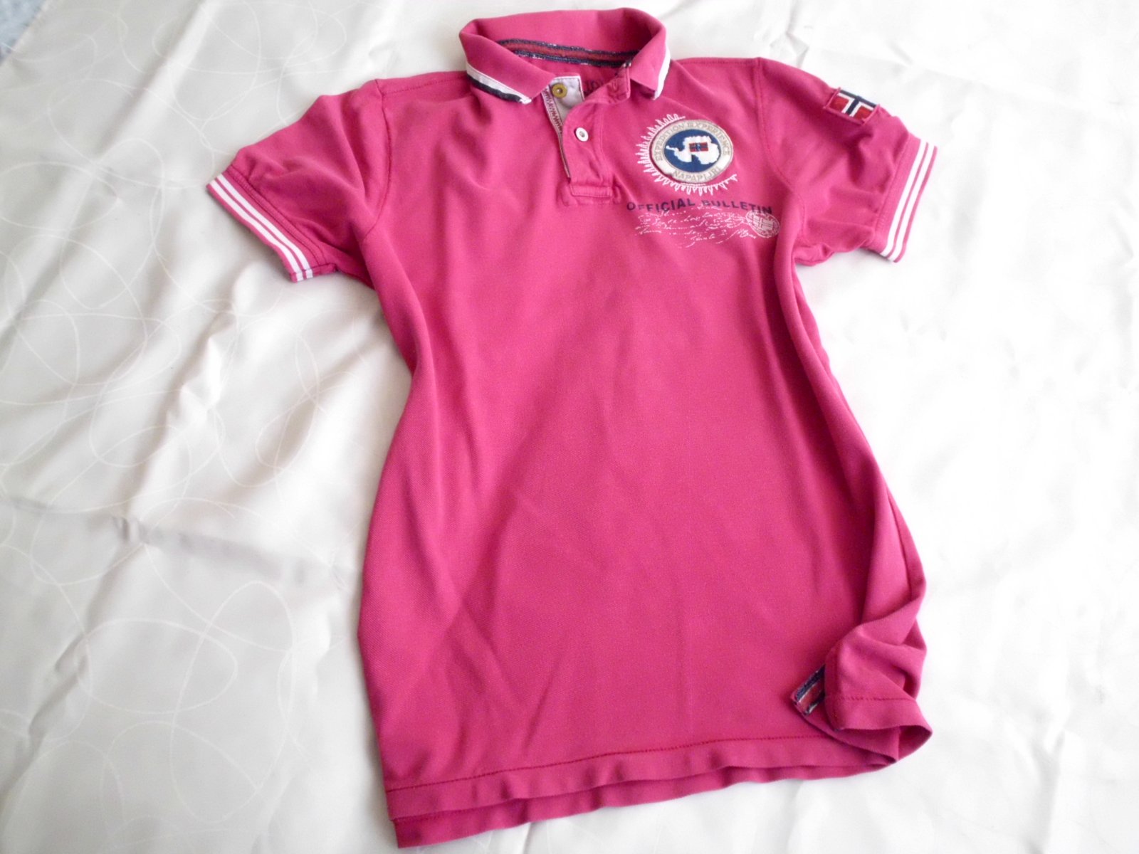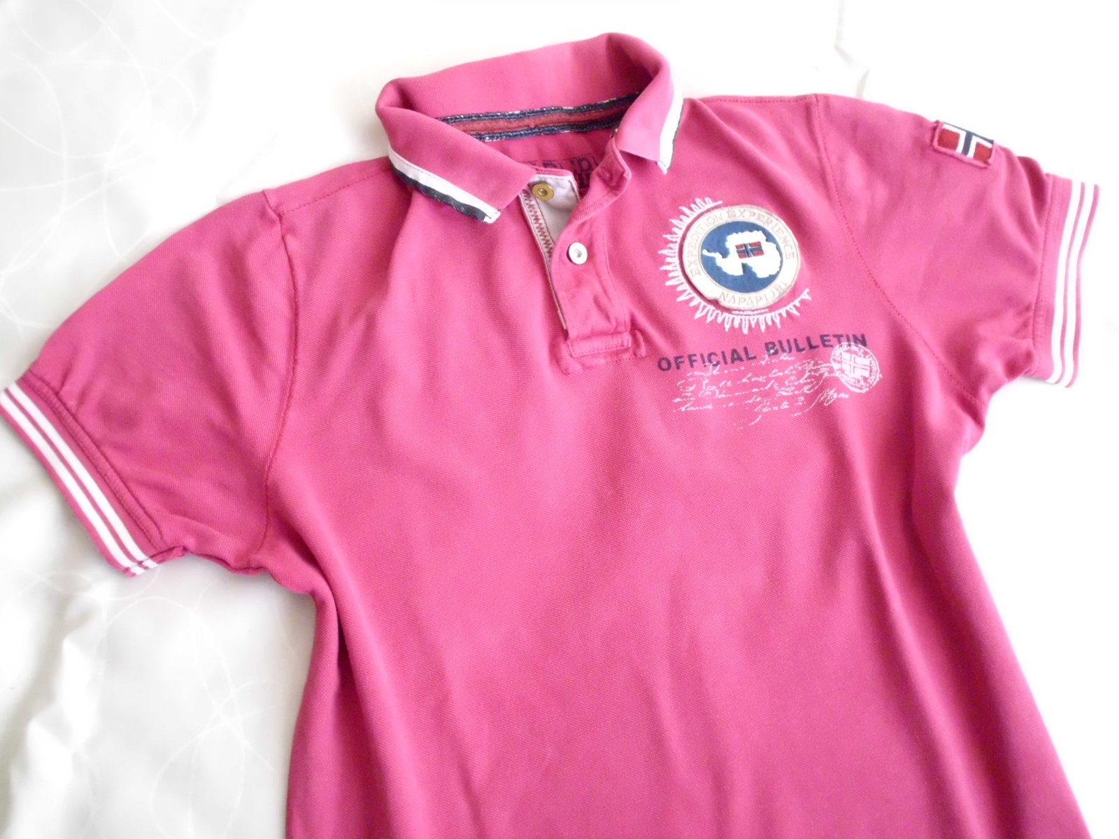 Predám slim pánske pólo tričko Napapijri vel. L, šírka 56 cm, dĺžka 74 cm, rukáv 22 cm, tmavoružová farba ako na foto, príjemný materiál, super stav