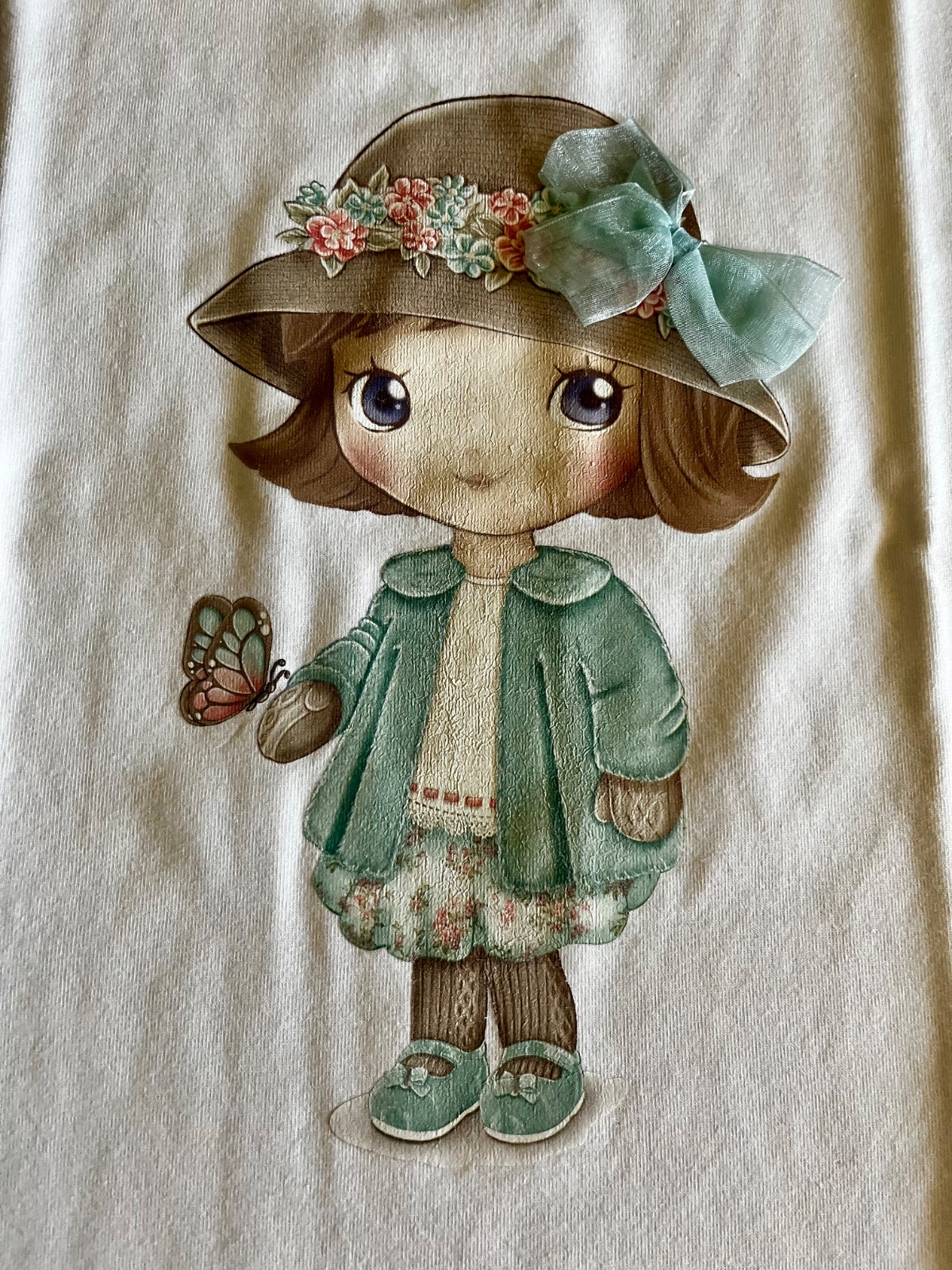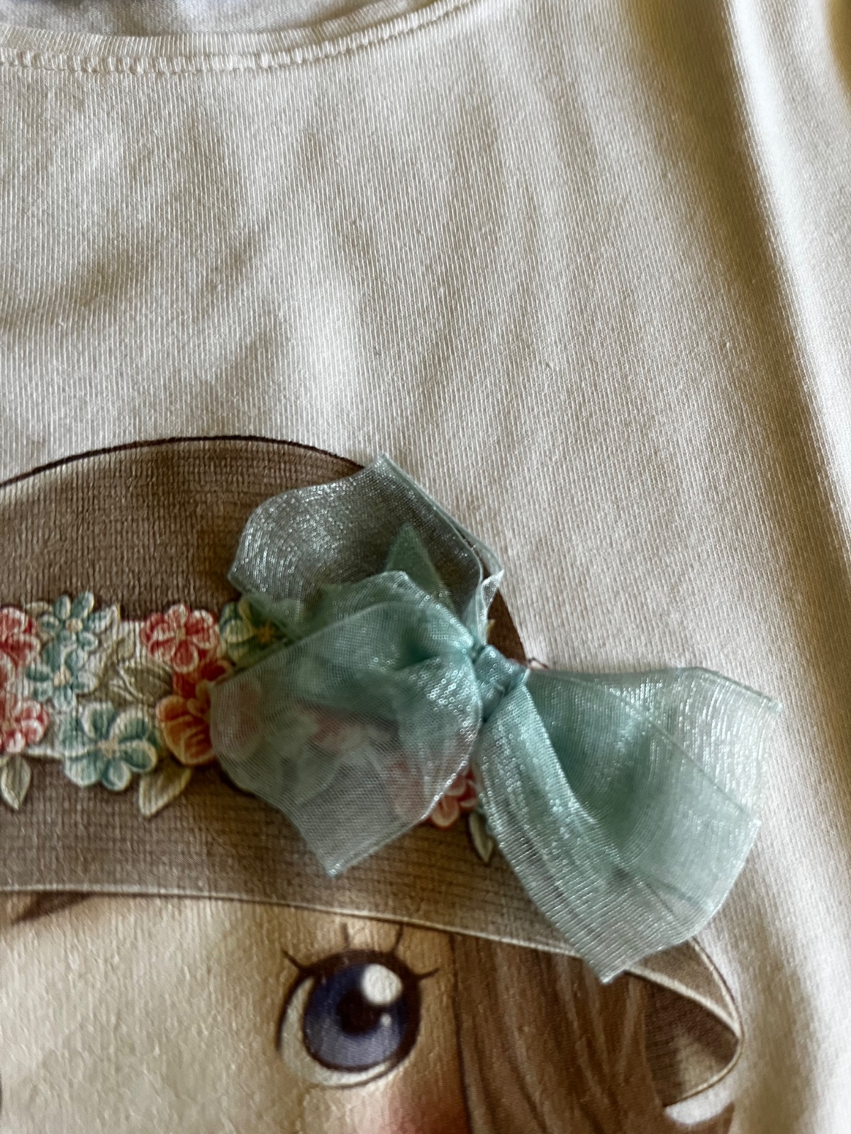 Vpredu je obrázok dievčatka s 3D šifónovou mašličkou.