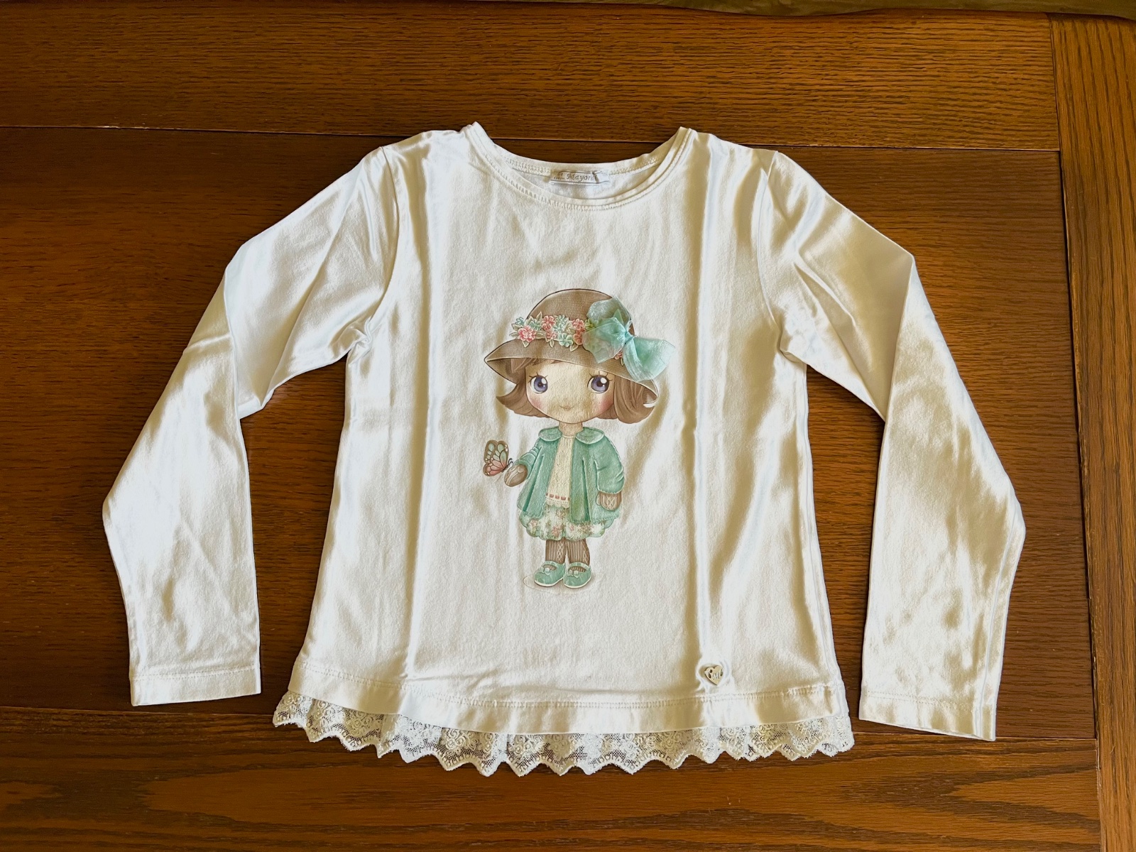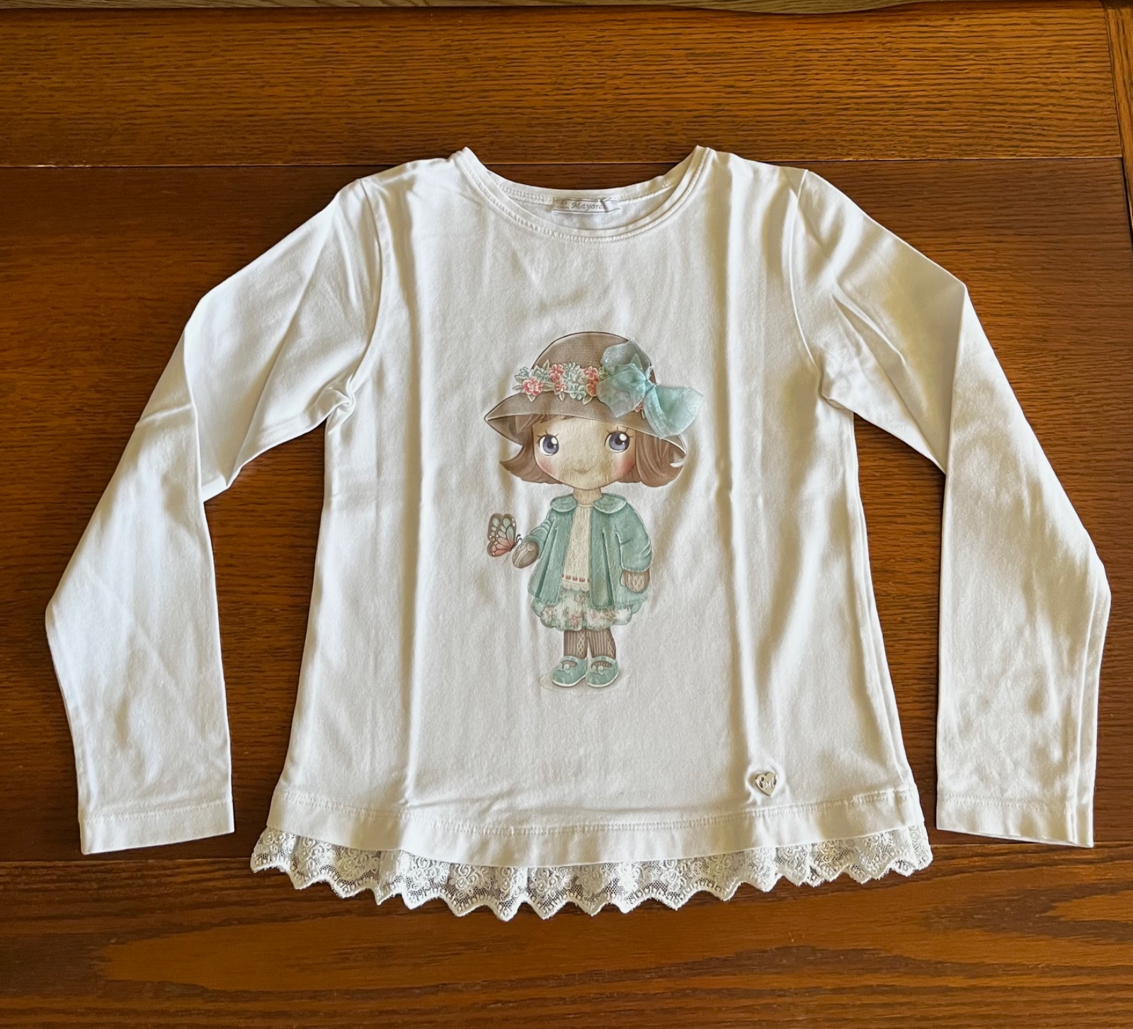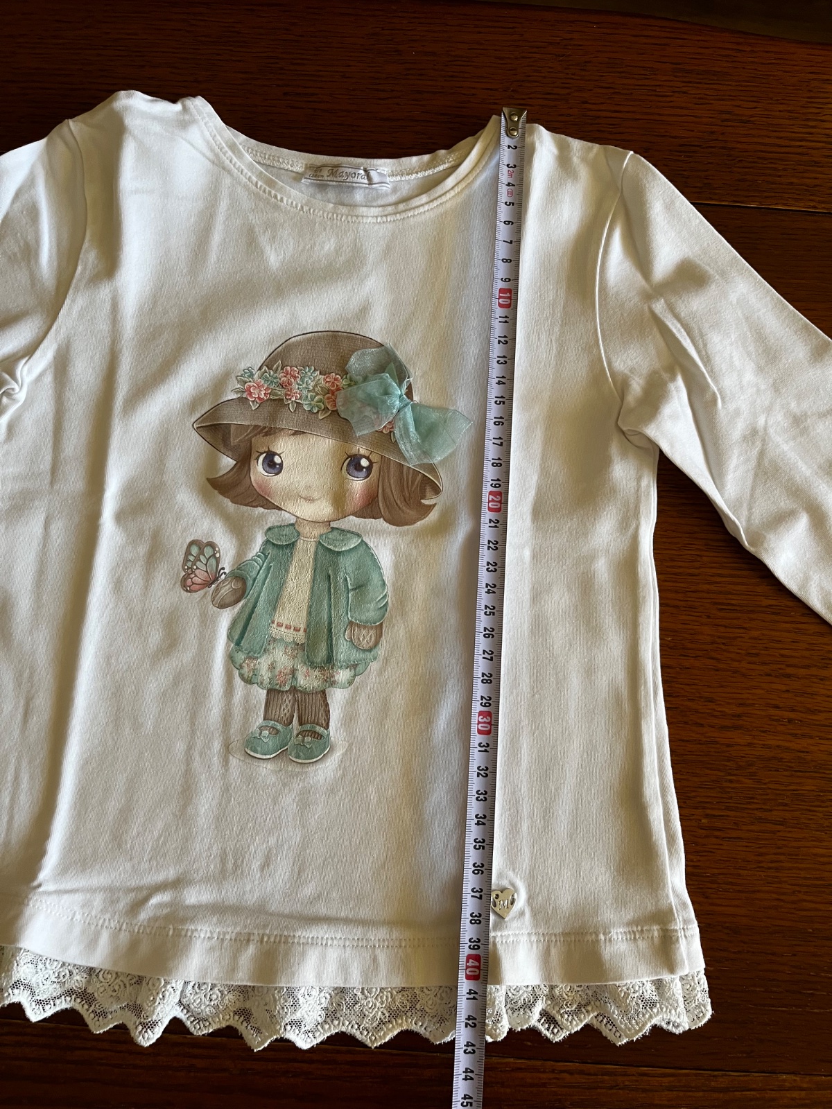 Naspodku kovová platnička Mayoral a ozdobná čipka.