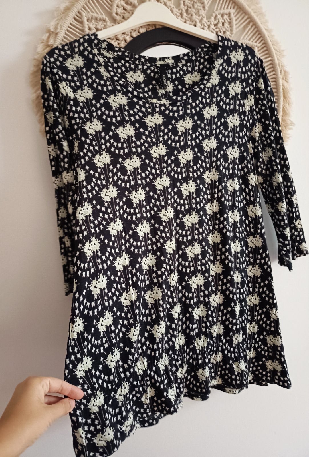 Perfektná predĺžená bavlnená tunika s koženkou. Dĺžka - 91 cm, šírka - 2x 57 cm + mierne do A, rukáv od krku - 66 cm. UNI veľkosť, treba sa riadiť mierami!