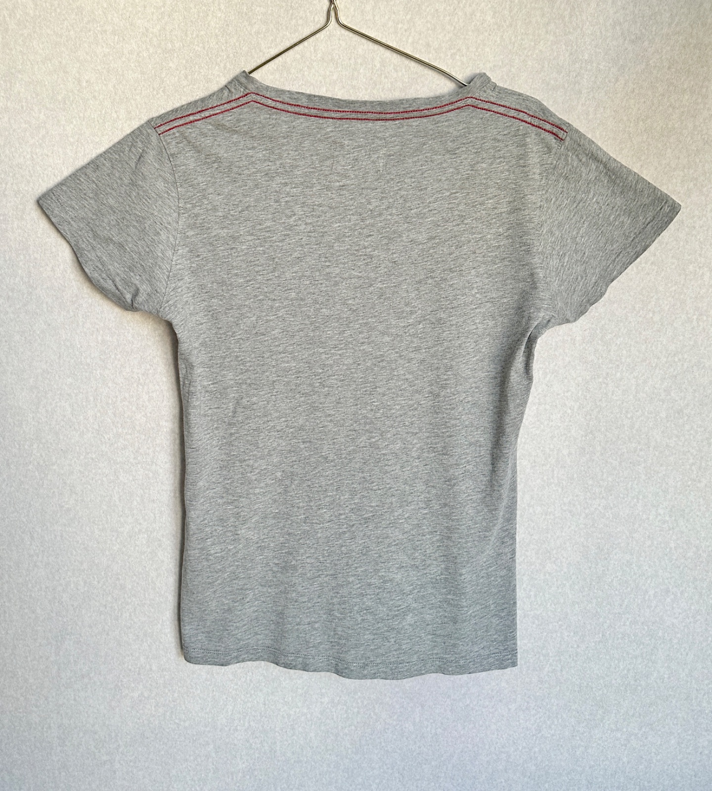 Príjemné bavlnené tričko, v peknom stave, v prednej časti je profesionálne zašitá malinká dierka s podlepením, takže ďalej nebude pracovať. Nie je to nijako viditeľné, len keď sa tričko obráti naruby je tam vidieť malý štvorček podlepenia. 100% bavlna. PC 110 Eur.