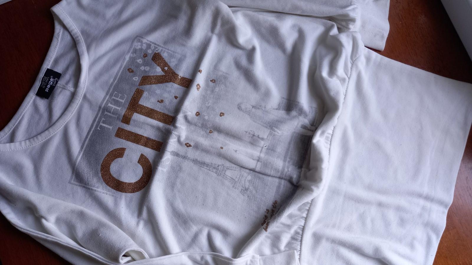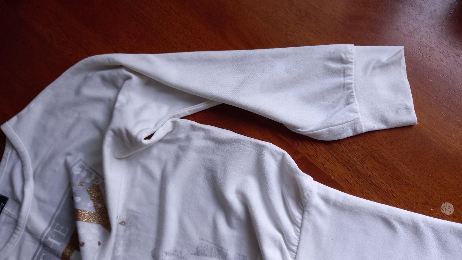 Zaujímavé tričko tunika jemnucka bavlna radi sme nosili bez poskodenia,visačky odstrihnute,dĺžka 47cm vpredu 52cm po bokoch ,šírka pod pazuchami 41x2cm,rukáv 38cm.
