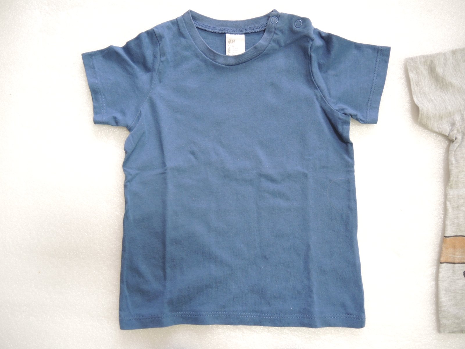 Predám 4 krásne tričenká. Všetky sú H&M. Svetlo šedé so psíkom sme mali max 2x a pásikavé bolo nosené viac, bililinku pri naklonení vidno drobný chĺpoček z prania. Ale nie je ešte žmolkavé. Tmavomodré a svetlejšie modré boli len opraté. Pri krku sa rozopínajú a uľahší sa prevlečenie hlavičky. Celková dĺžka je 37 cm a šírka 29 cm. Cena je za všetky tričenká spolu, samostatne nepredávam. (V01)