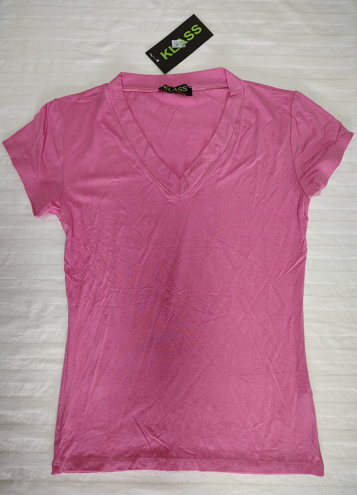 dámsky elastický ružový top s V výstrihom,