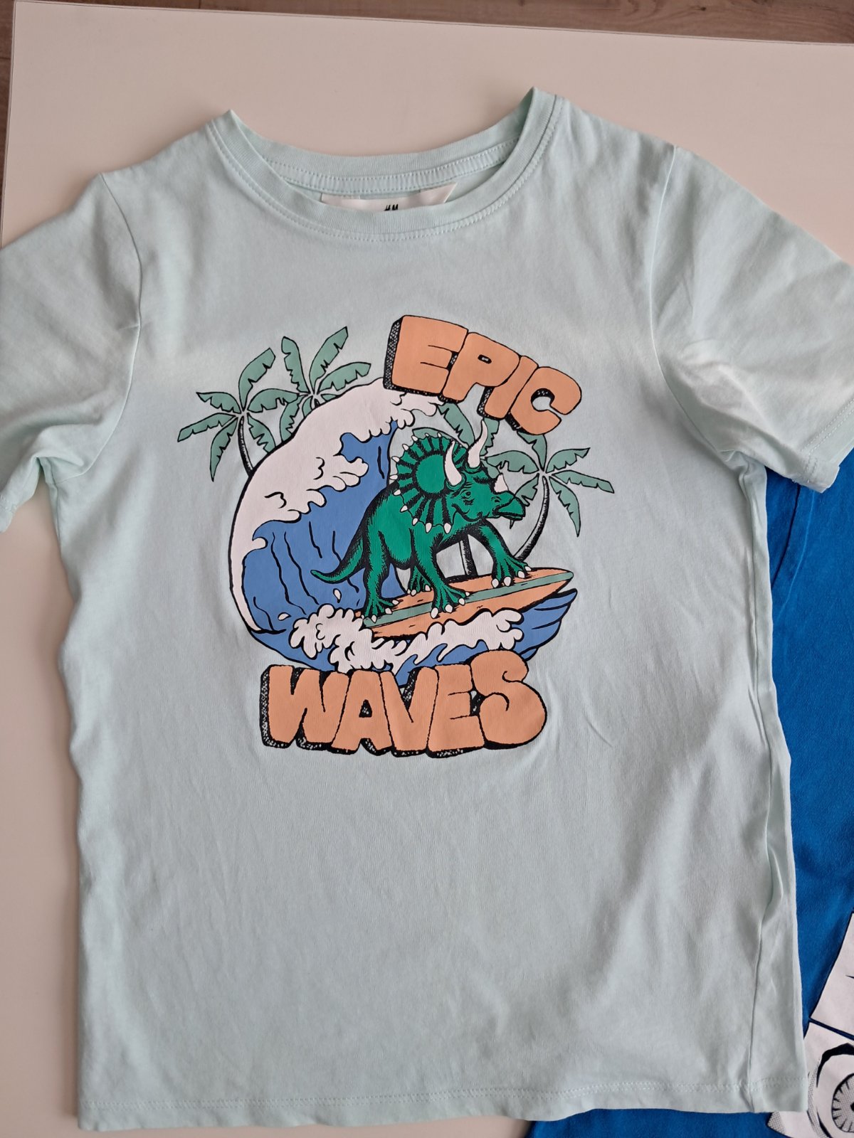Matove tricko H&M v.134 ale je mensie podla mna. Na rukave ma 2 fliaciky. Cena 1,8e