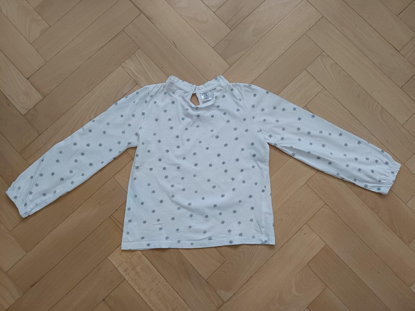 Biele tričko s dlhým rukávom, potlač Mačičky, veľkosť 128, značka Takko Fashion.