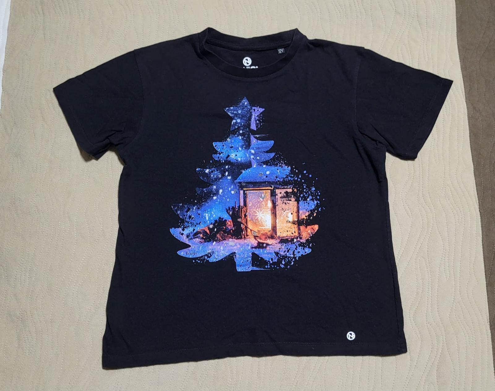 Predám vianočné tričko, veľkosť uvedená na 12 rokov, ale je menšie, viď foto