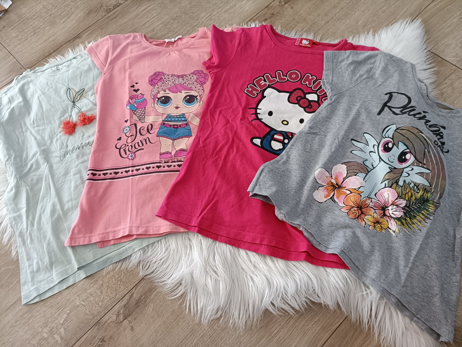 Bledo zelené Reserved,bledo ružové LOL,sýto ružové Hello Kitty,šedé jUnicorn,nosene ako 140velkost,spolu 3e