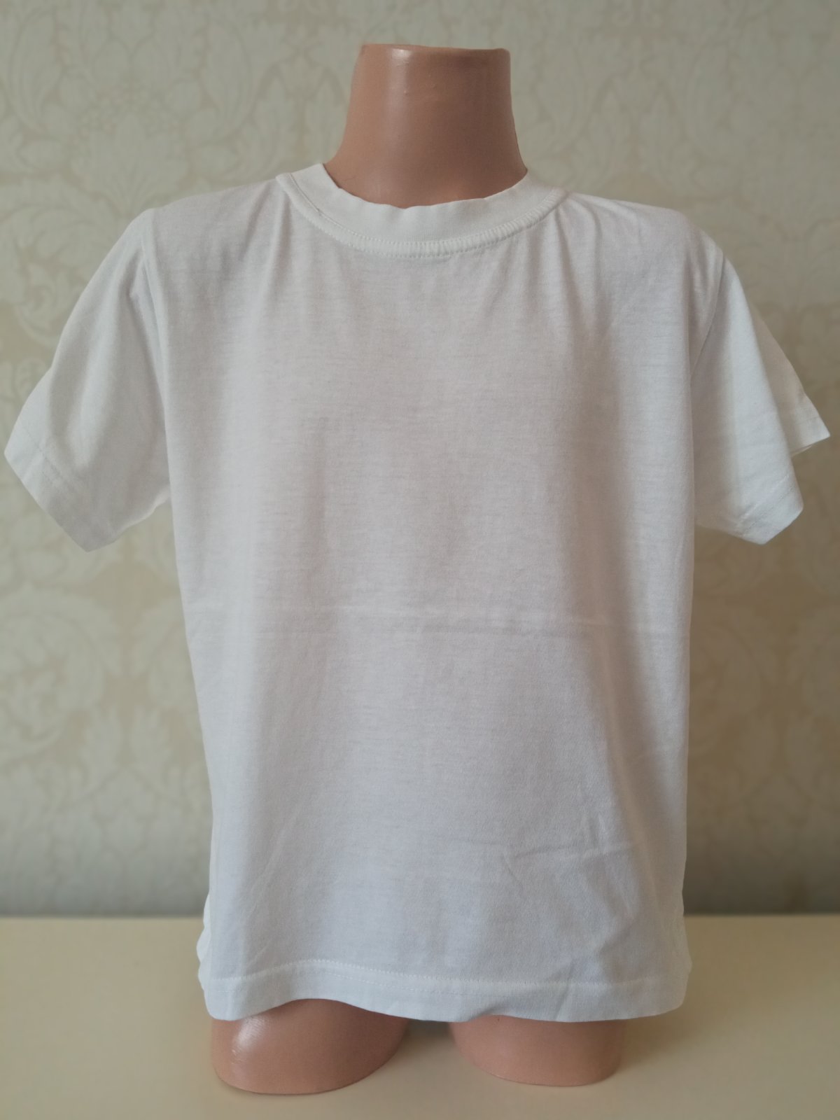 Chlapčenské, dievčenské biele tričko s krátkym rukávom, jednofarebné, elastické, okrúhly výstrih, materiál 100%bavlna.