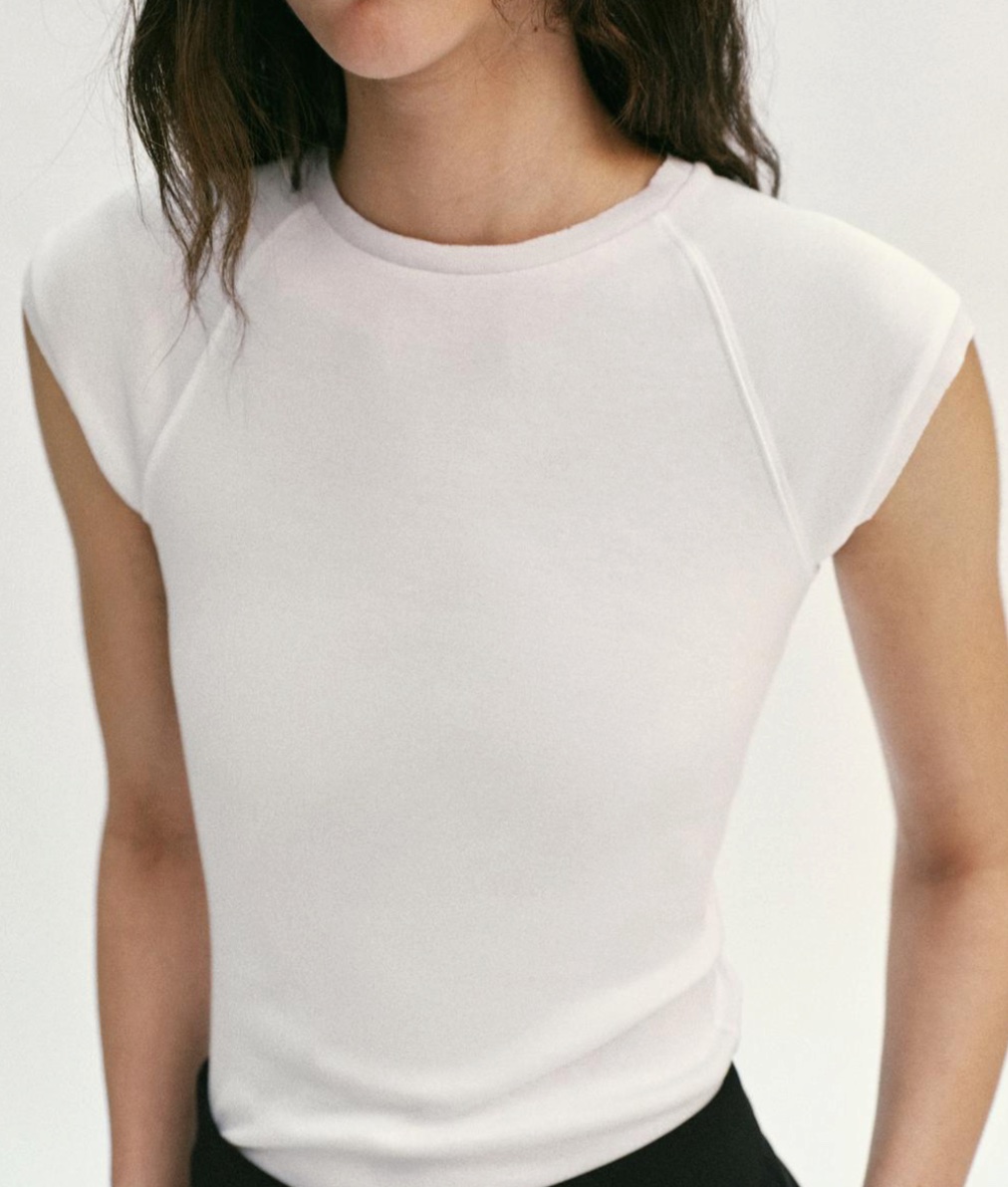 Tričko z bavlnenej priadze. Okrúhly výstrih a krátke raglánové rukávy. Vybielený efekt. Rovný spodný lem.