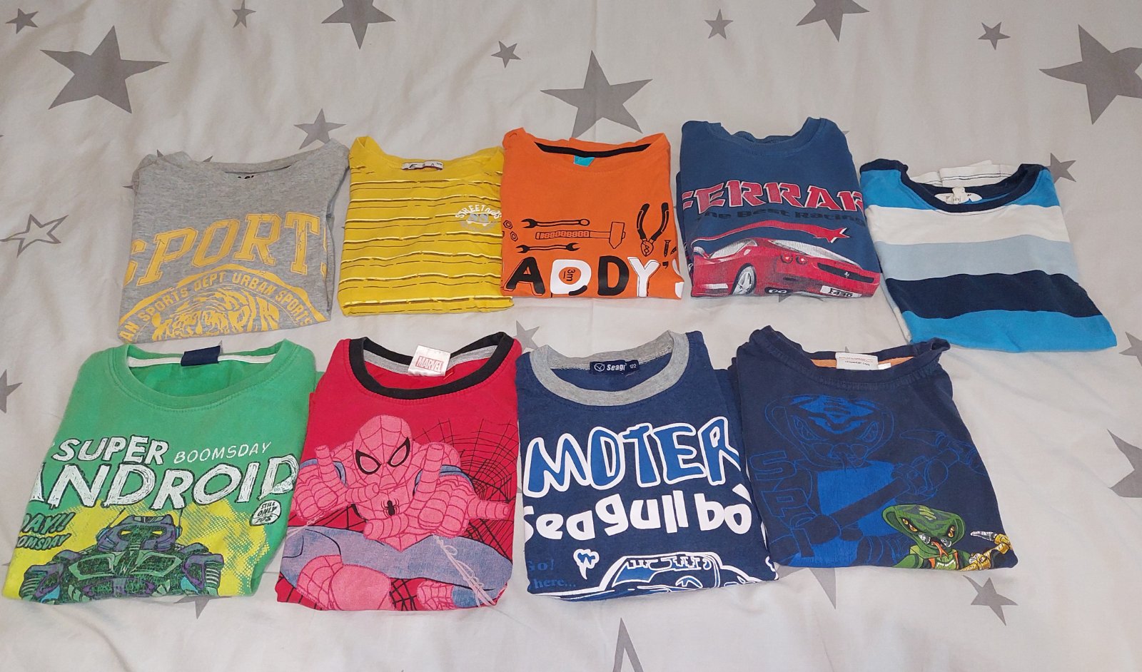 Mix 9 tričiek s dlhým rukávom, na ihrisko, na dvor, na chatu. Veľkosti 122/128 (6 - 8 rokov).
