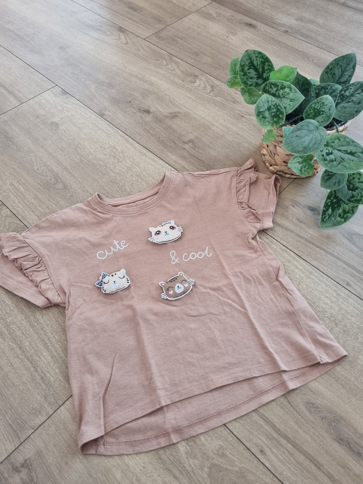 Tričko je bez fľakov, dier, bolo raz oblečené. Písaná veľkosť 128, ale zdá sa mi kratšie, preto sedí na 122. Cena 1€