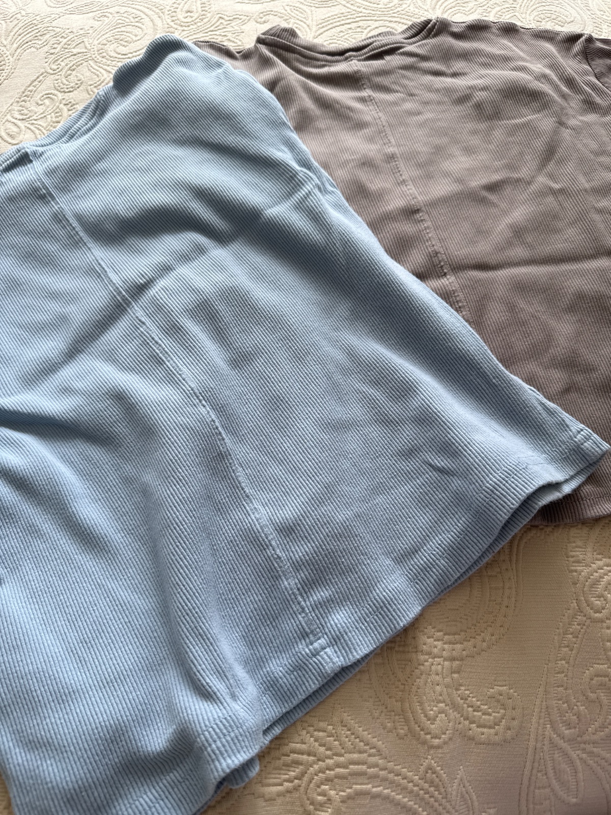 2 veľmi pekne tricka s aplikáciou. Na modrom som nasla 2 mini škvrnka žlté, vidno len veľmi zblízka, cena spolu za obe.