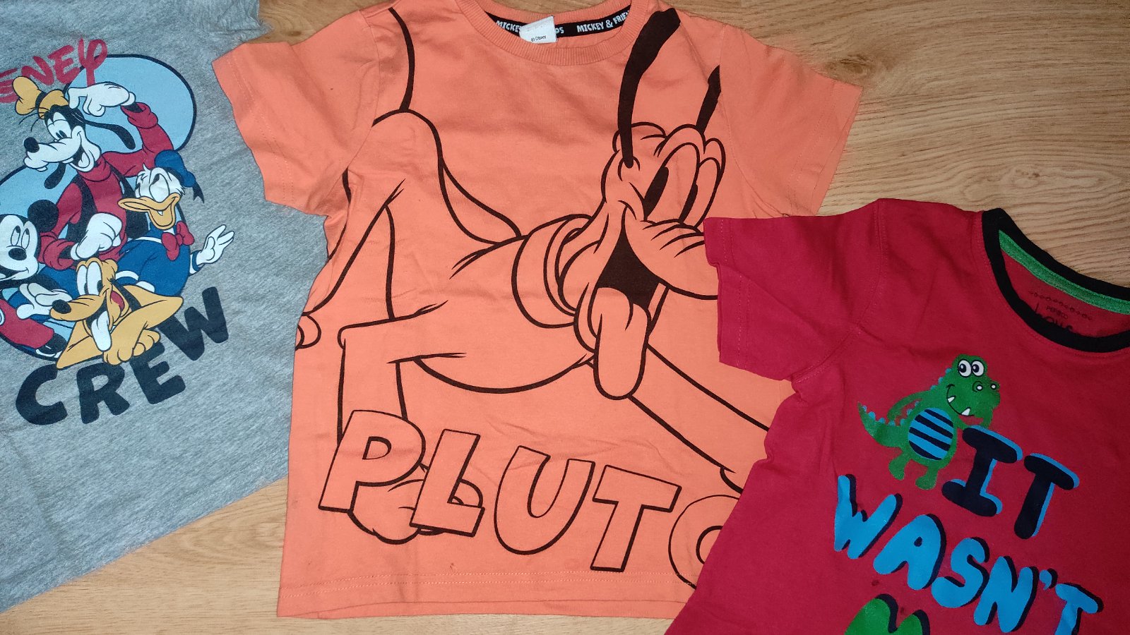 Ponúkam na predaj pekne tričká pre chlapca. Sú bavlnené, nosené, bez akýchkoľvek poškodení, nevyblednute, na červenom sú ale dva fliacky od atramentu, syn ho mal pritom len raz, nezišlo to v práčke. Cena 6 eur.