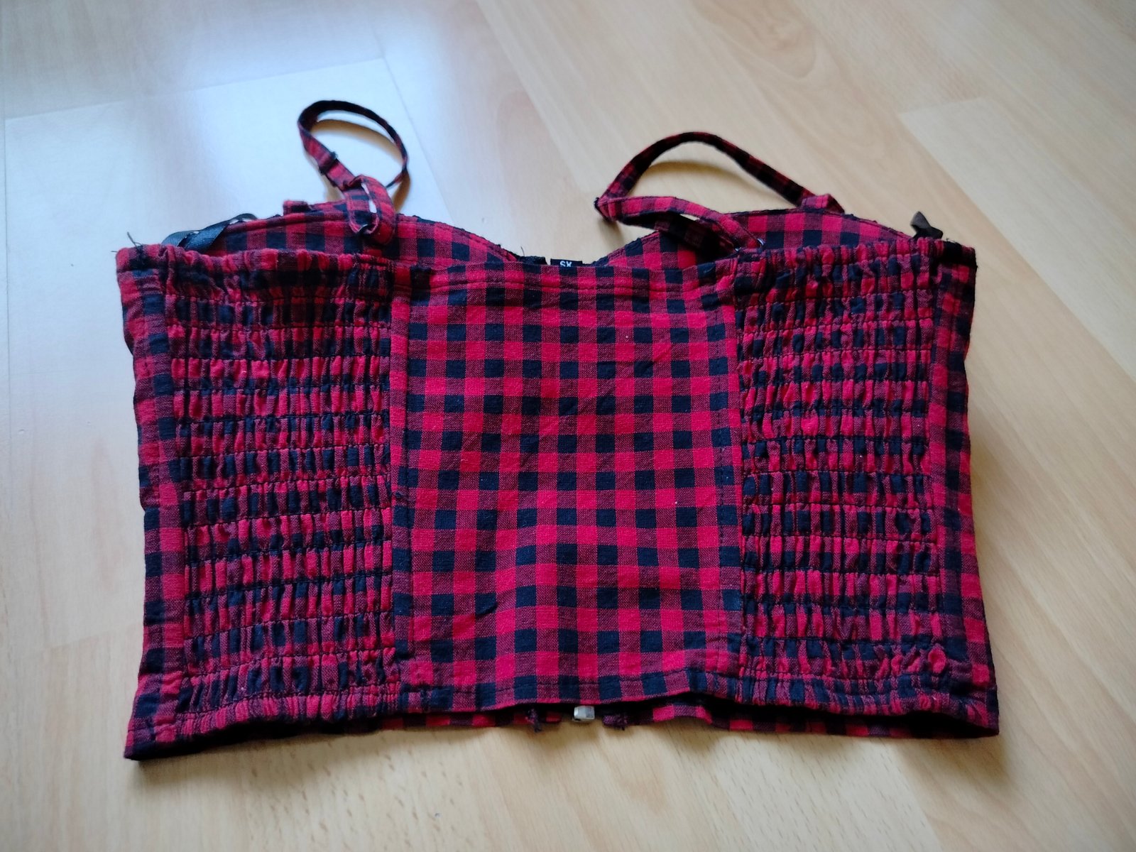 Takmer nenosený, ako nový, bez poškodení. Vzadu na gumičku, natiahne sa. Nastaviteľné ramienka. Vpredu na zips.