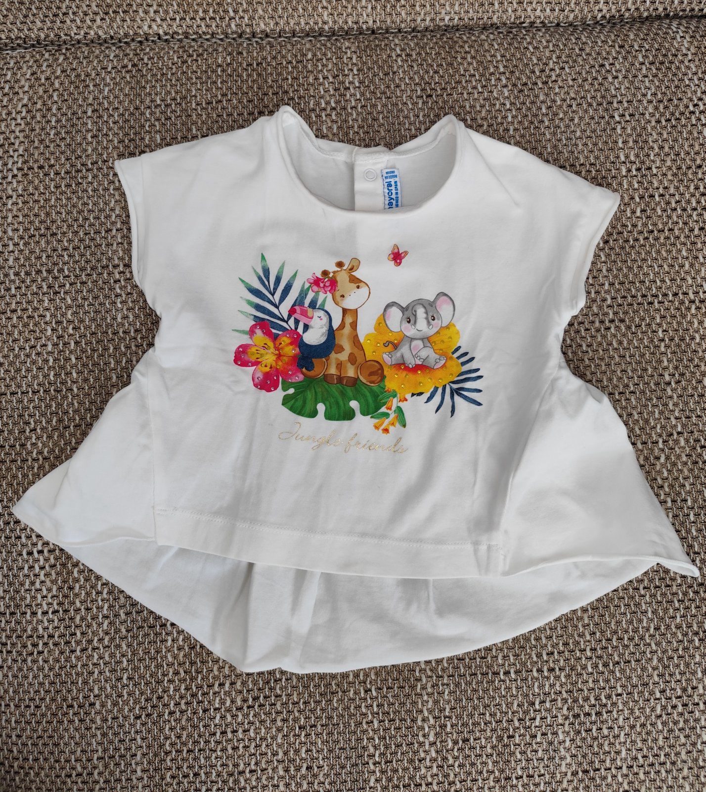 Prekrásne Mayoral tričko na leto s krásnymi detailami v TOP stave.. Velkost 86 ale je na mensie deticky v pohode aj velkost 80