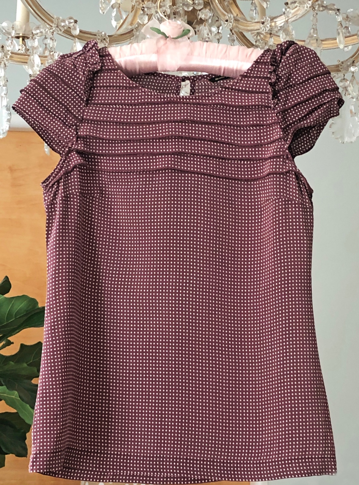 Bez poškodení, v super stave, 100% hodváb. Cukríková bordová s drobnými bielymi dotkami.