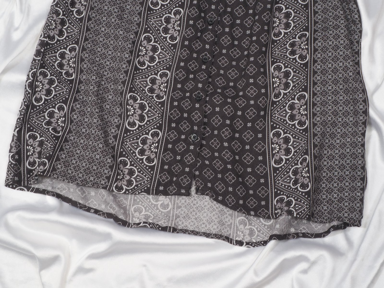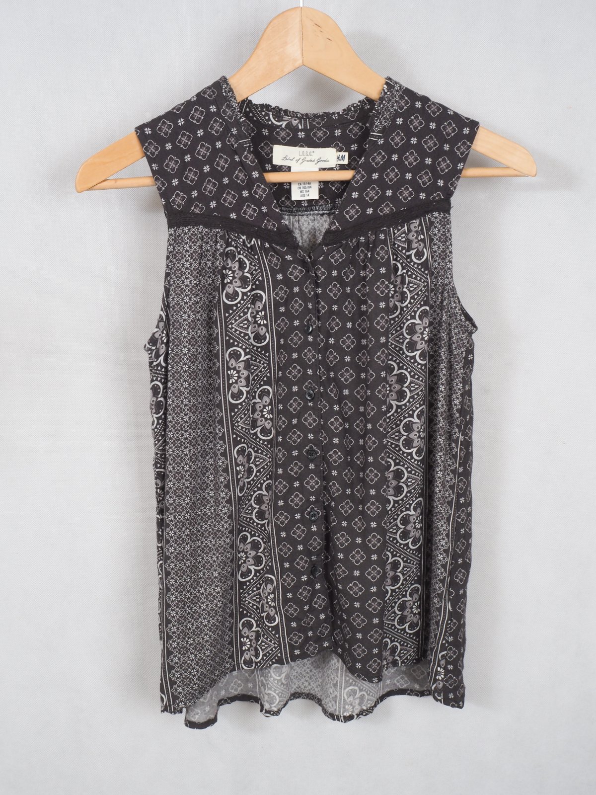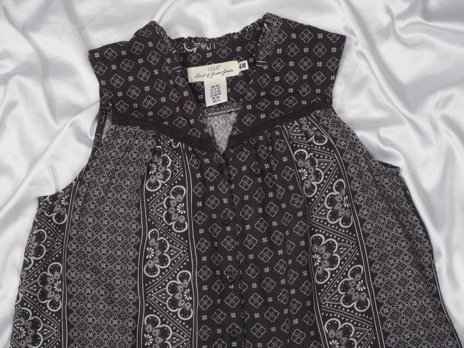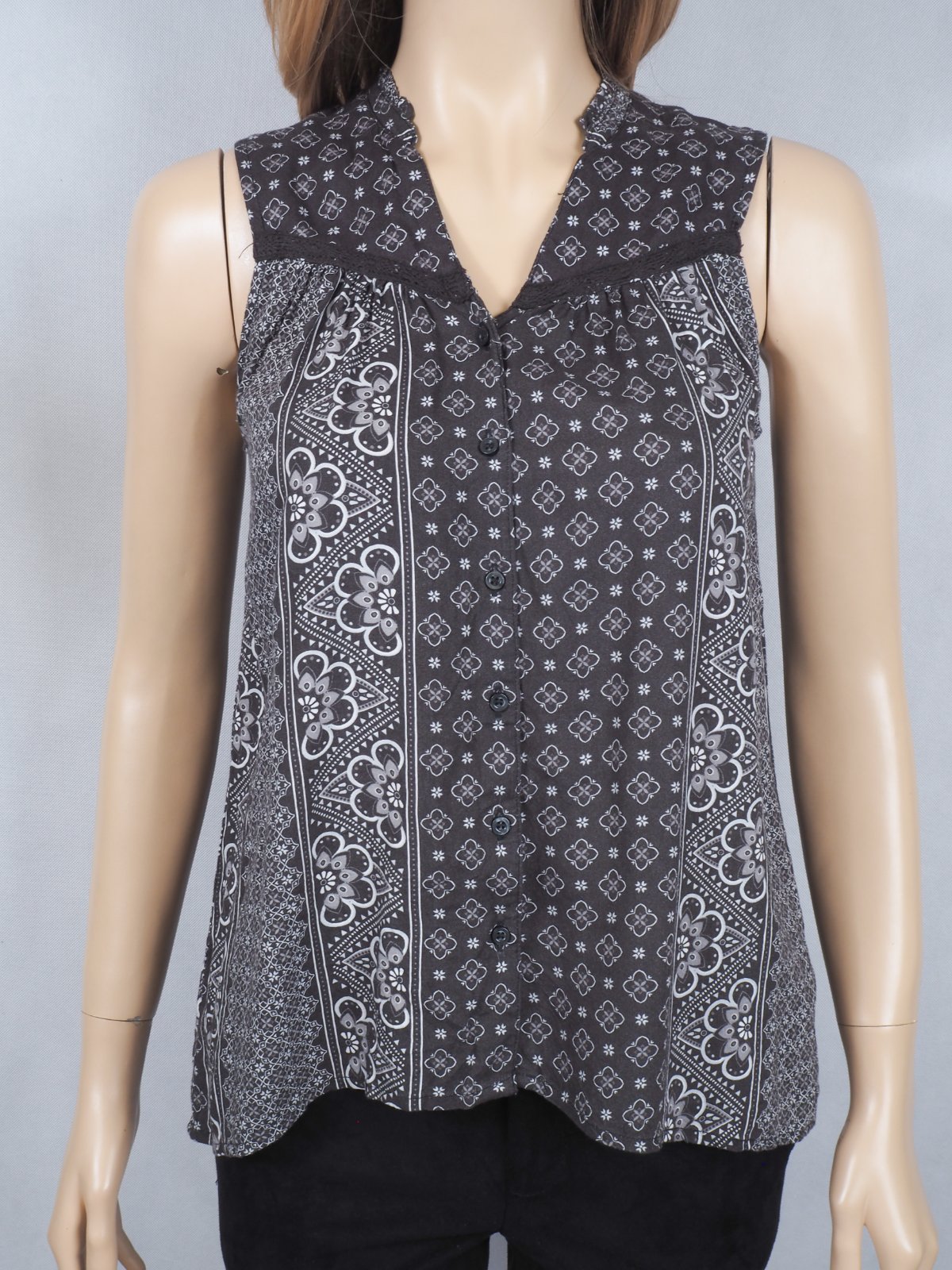 Kvalitný letný top tmavosivo-bielej farby, zapínanie na gombíky, materiál 100% viskóza, super stav.