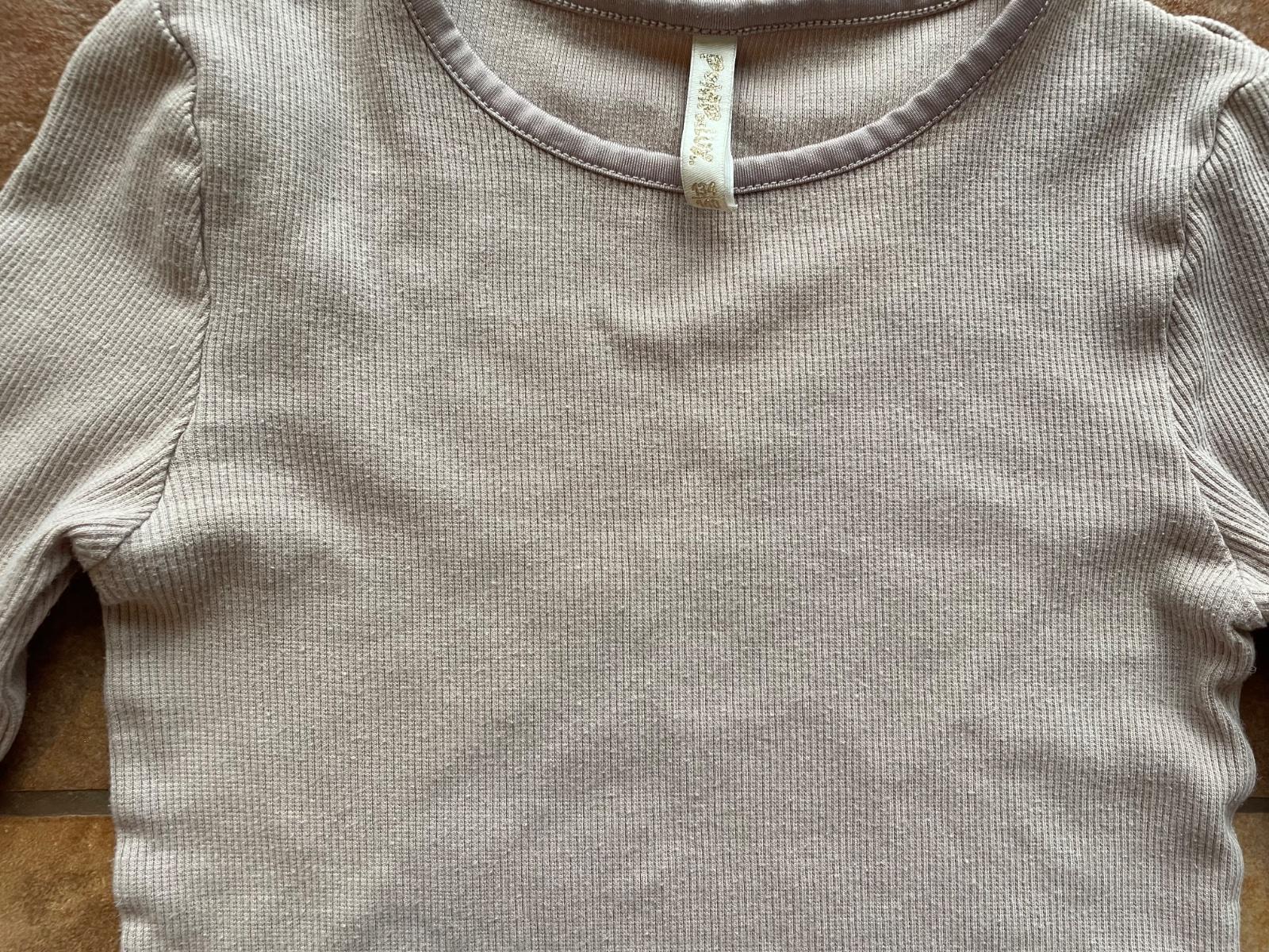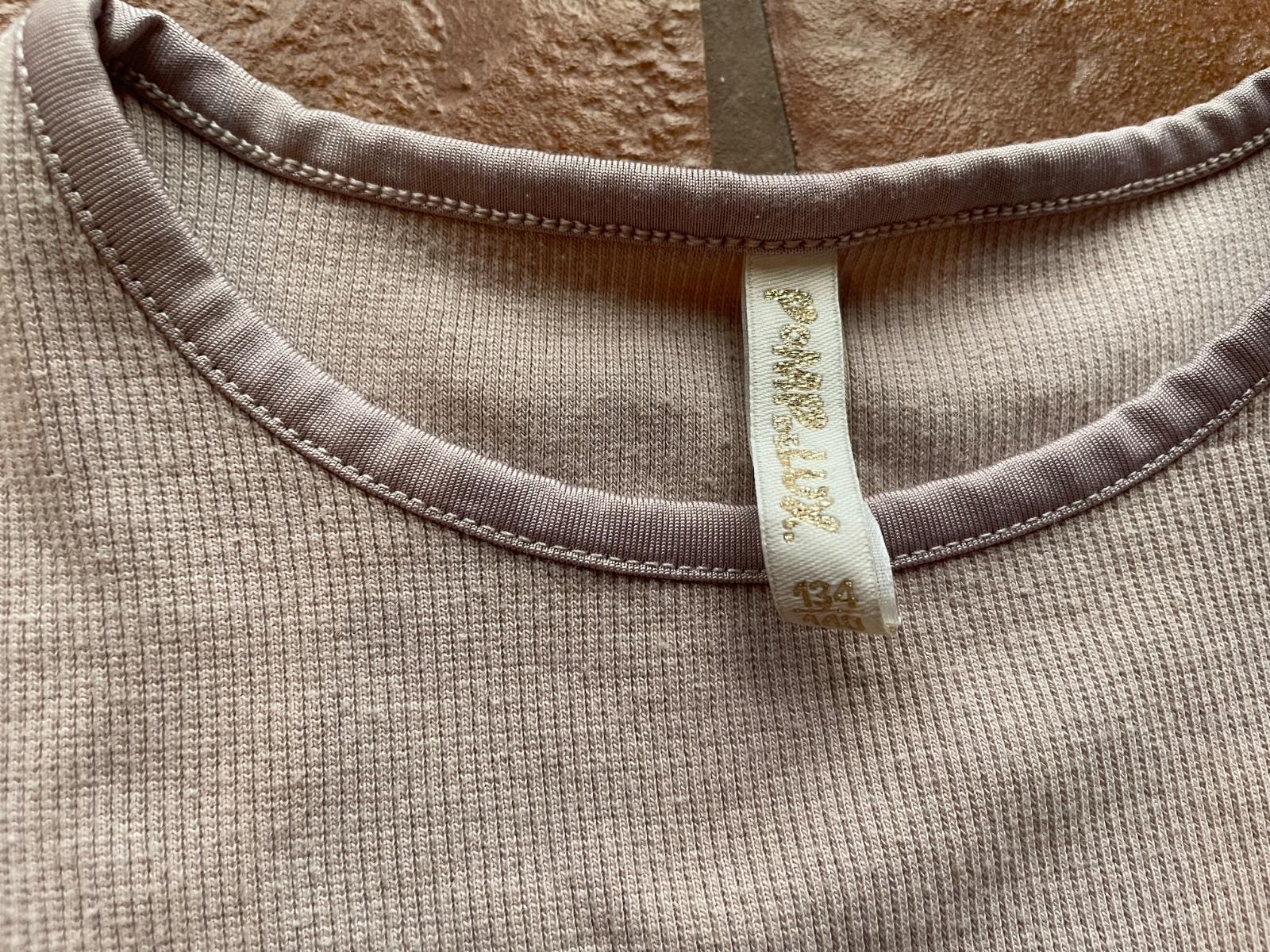 Pekny používaný stav. Ma už jemne minizmoleceky. Velikost 134-140. Celková dĺžka 46cm, sirka 2x31cm, rukáv od krku 52cm. Farba jemne fialkova.