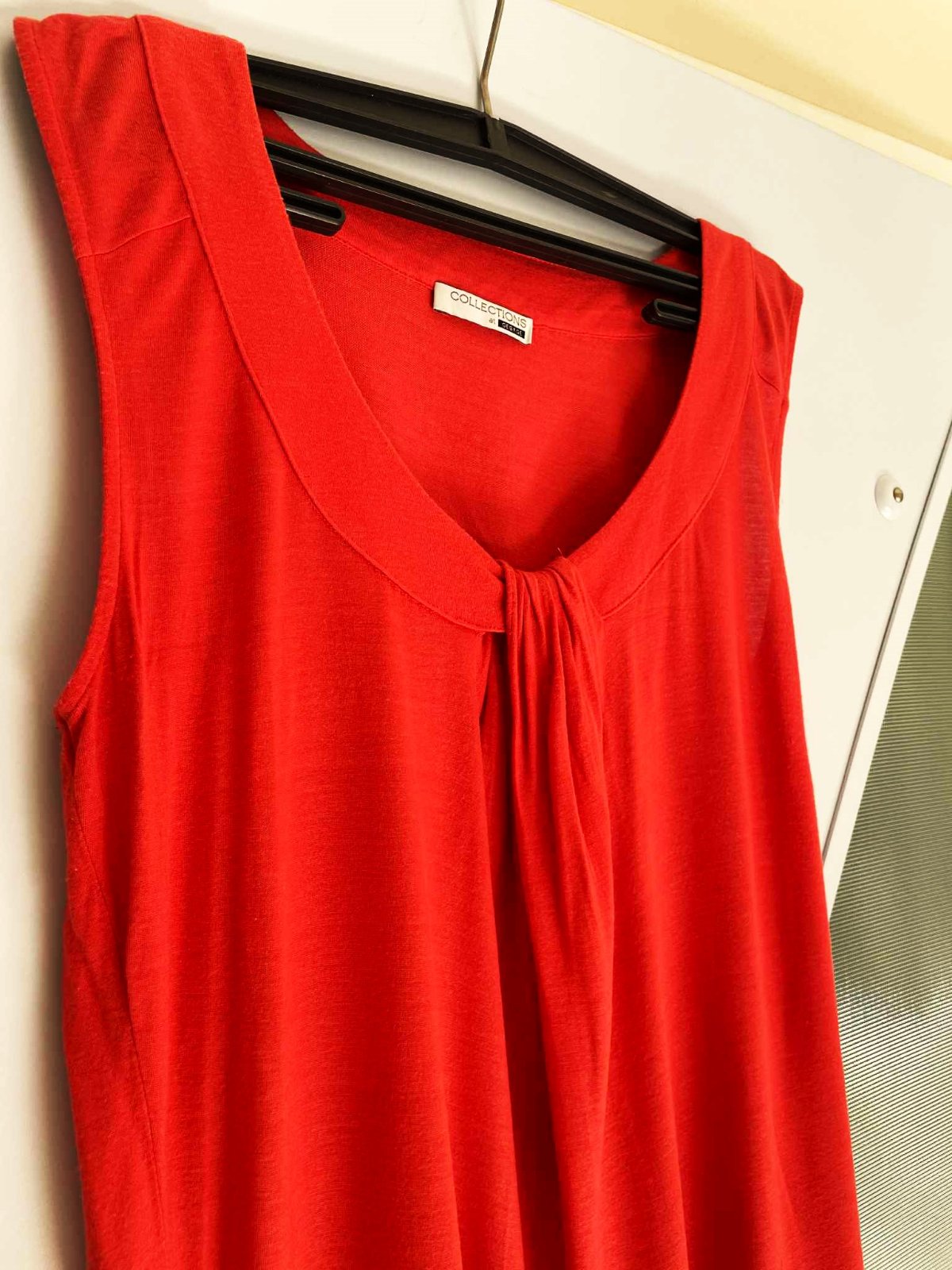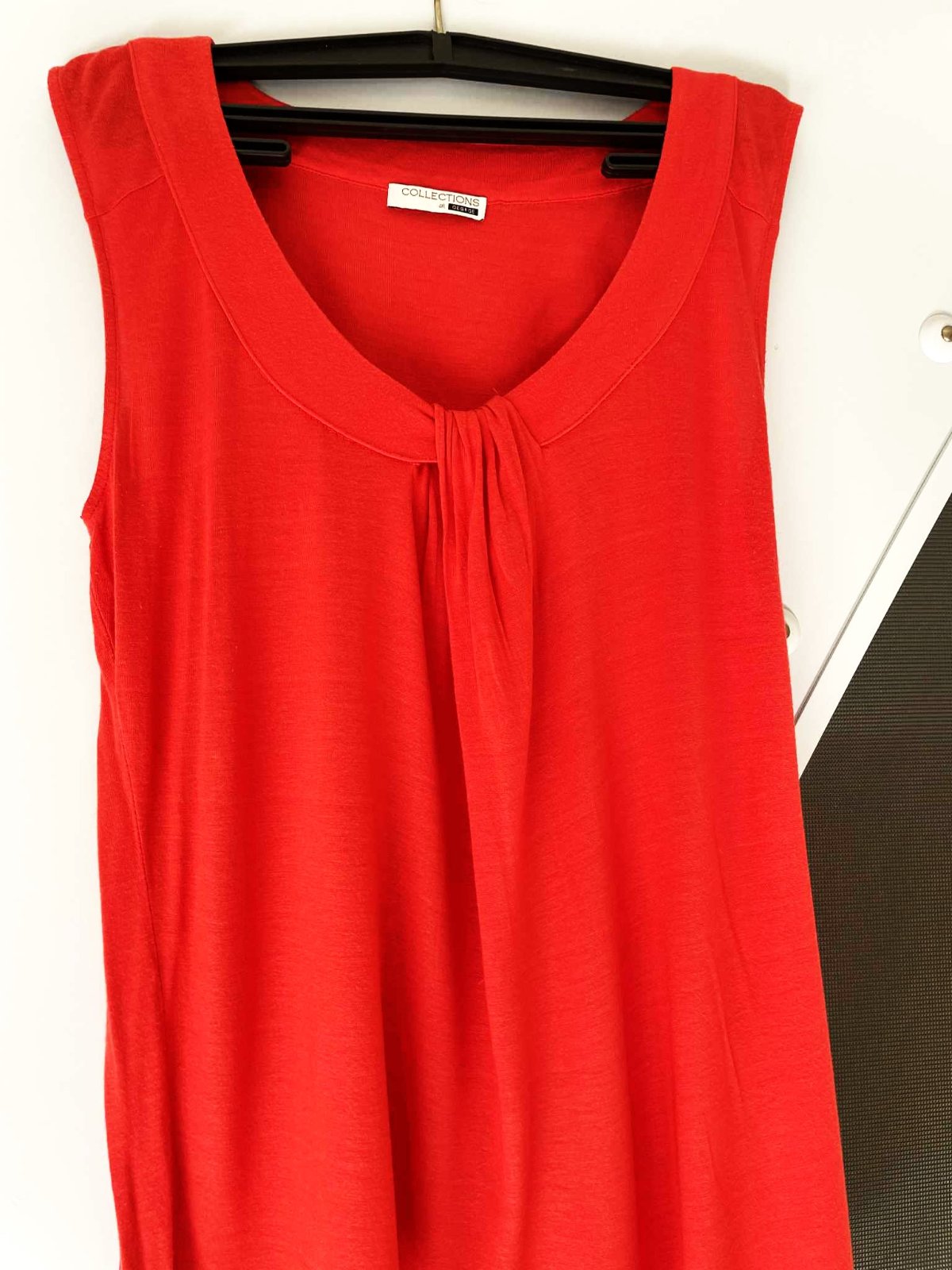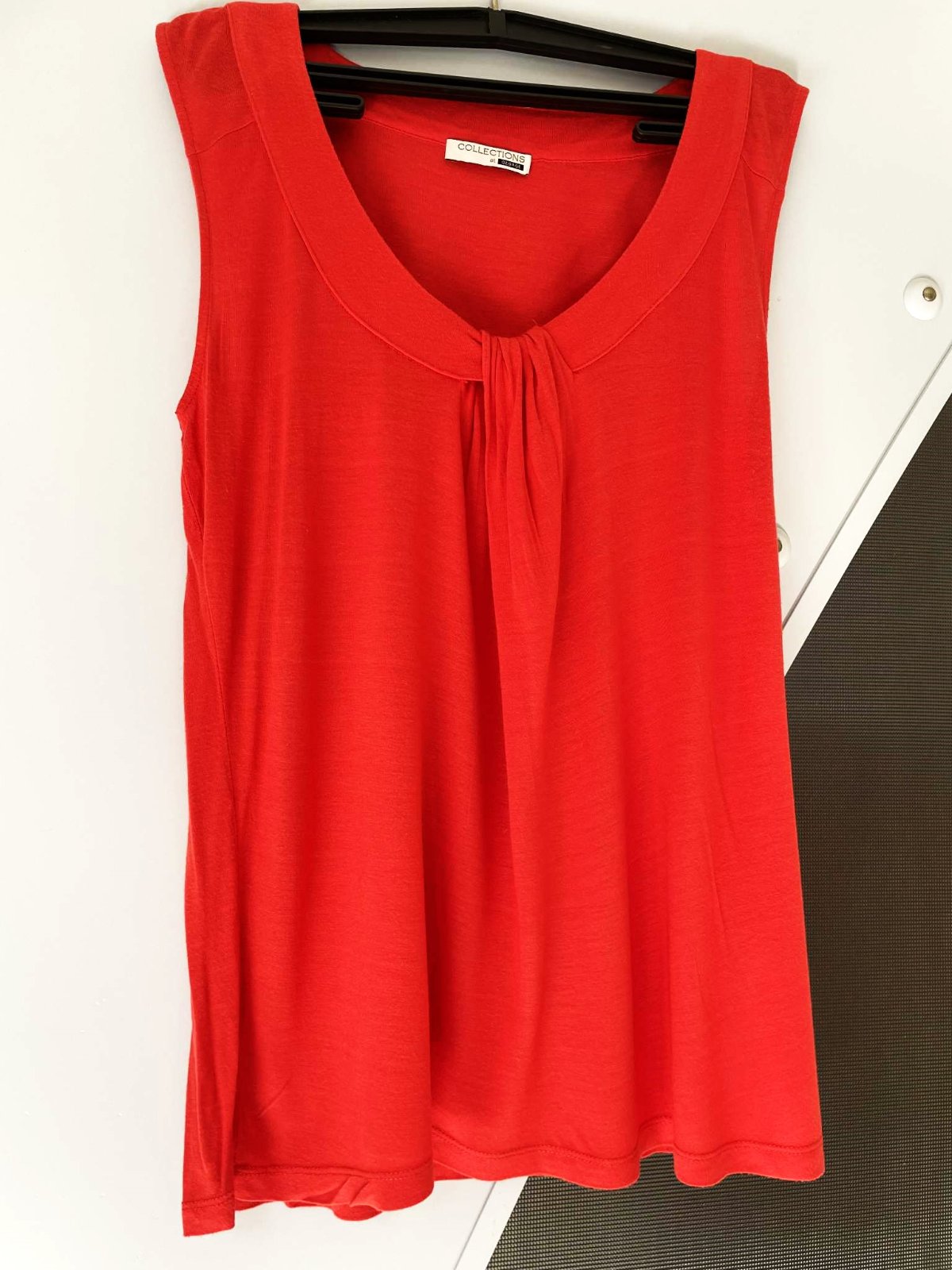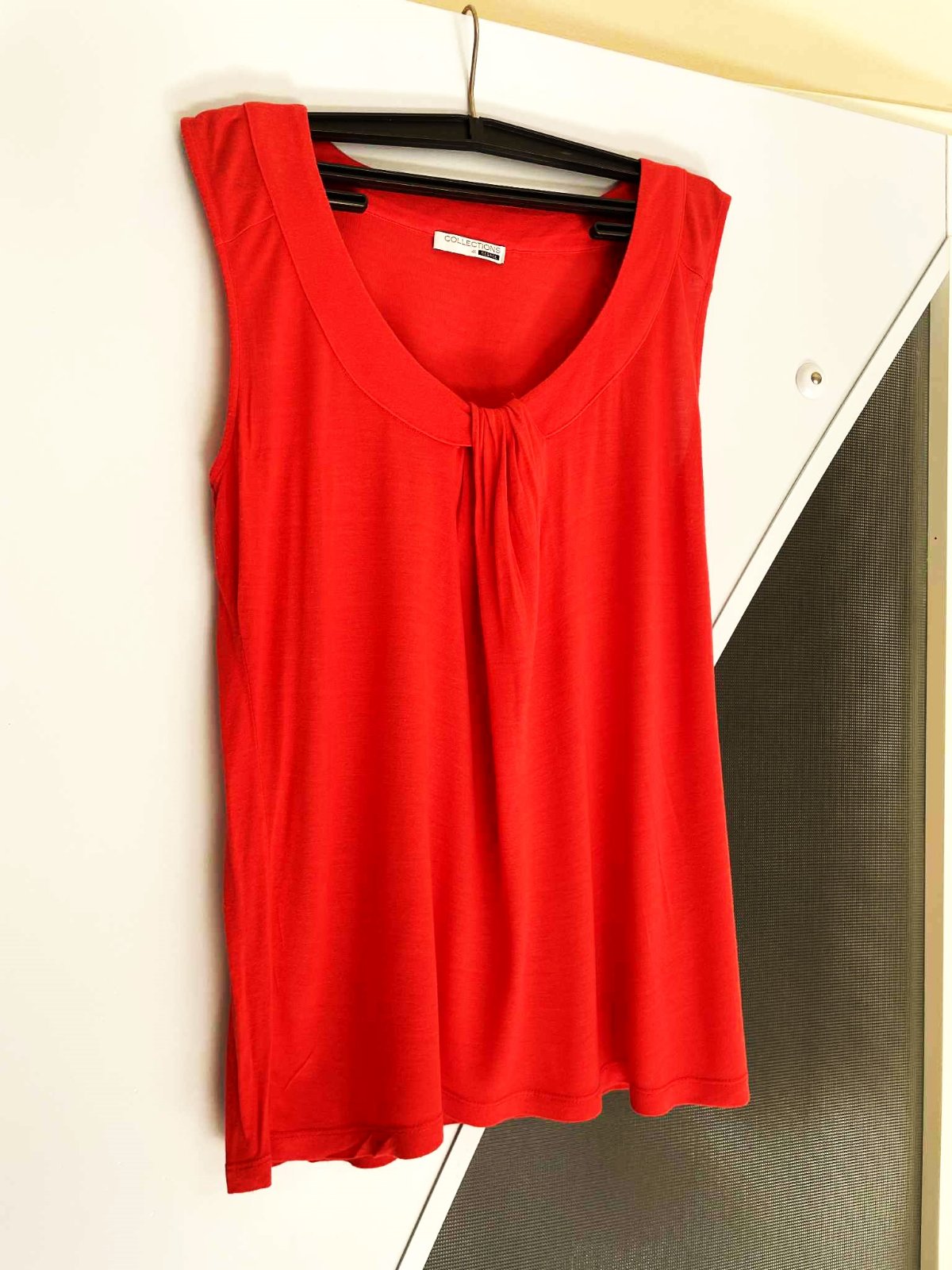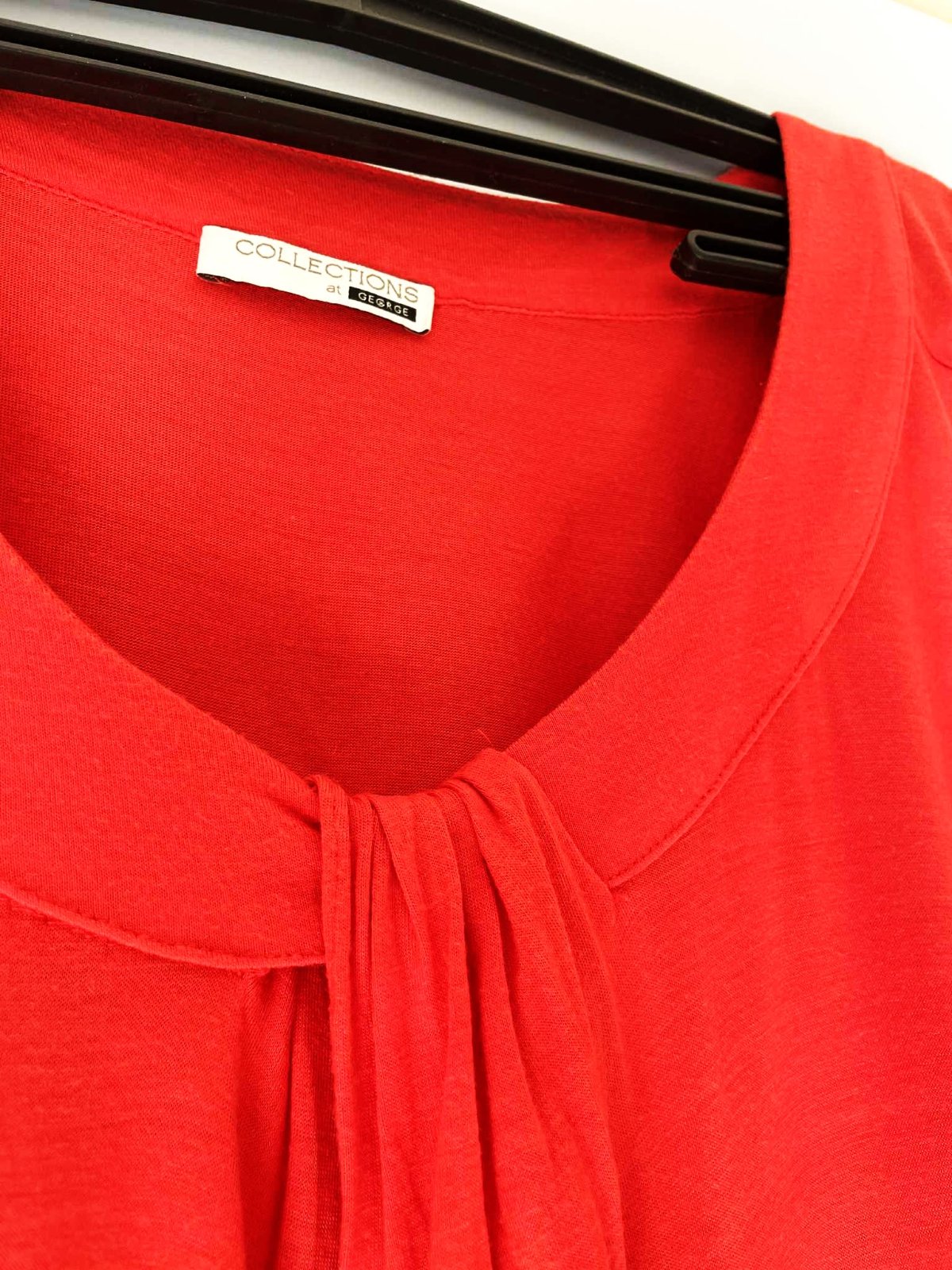zaujímavé pestré koralové tričko,kvalitné,farba pestrá letná - paradajkovo - koralovo - červená,nie sýto červená,perfektný strih,padavé,vhodné aj na spoloč. podujatie,vpredu krásne riasenie,pekne zakryje väčšie prsia a nedokonalosti,šírka meraná pod pazuchou = 45 ( až do 47 ) x 2 cm, dlžka celkom = 65 cm, dlžka od pazuchy dole = 45 cm,veľkosť 40