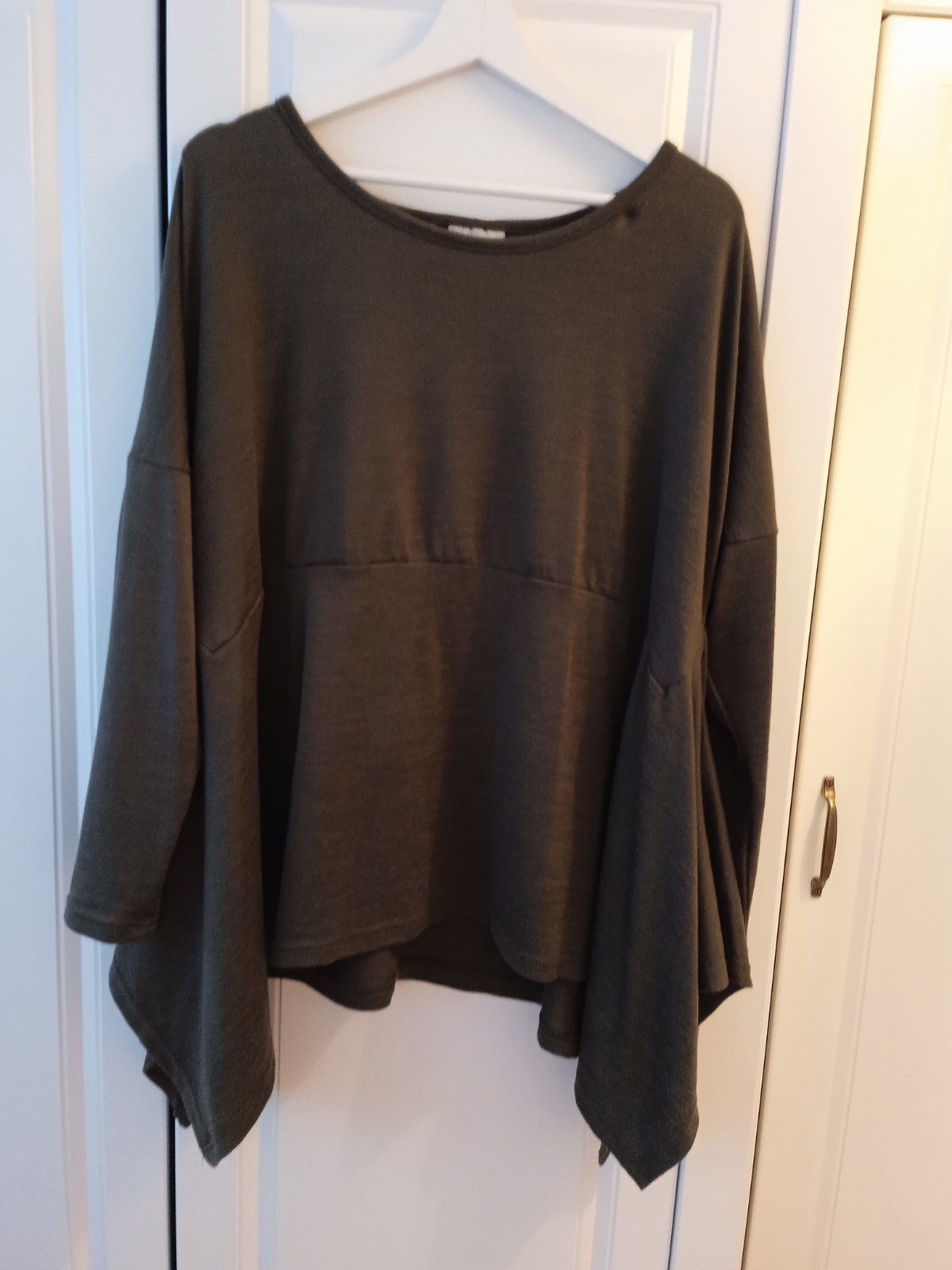 Perfektné bavlnené tričko s efektom podšitých dier, bez visačky. Dĺžka - 65/75 cm, šírka - 2x 57 cm, rukáv od krku - 69 cm.
