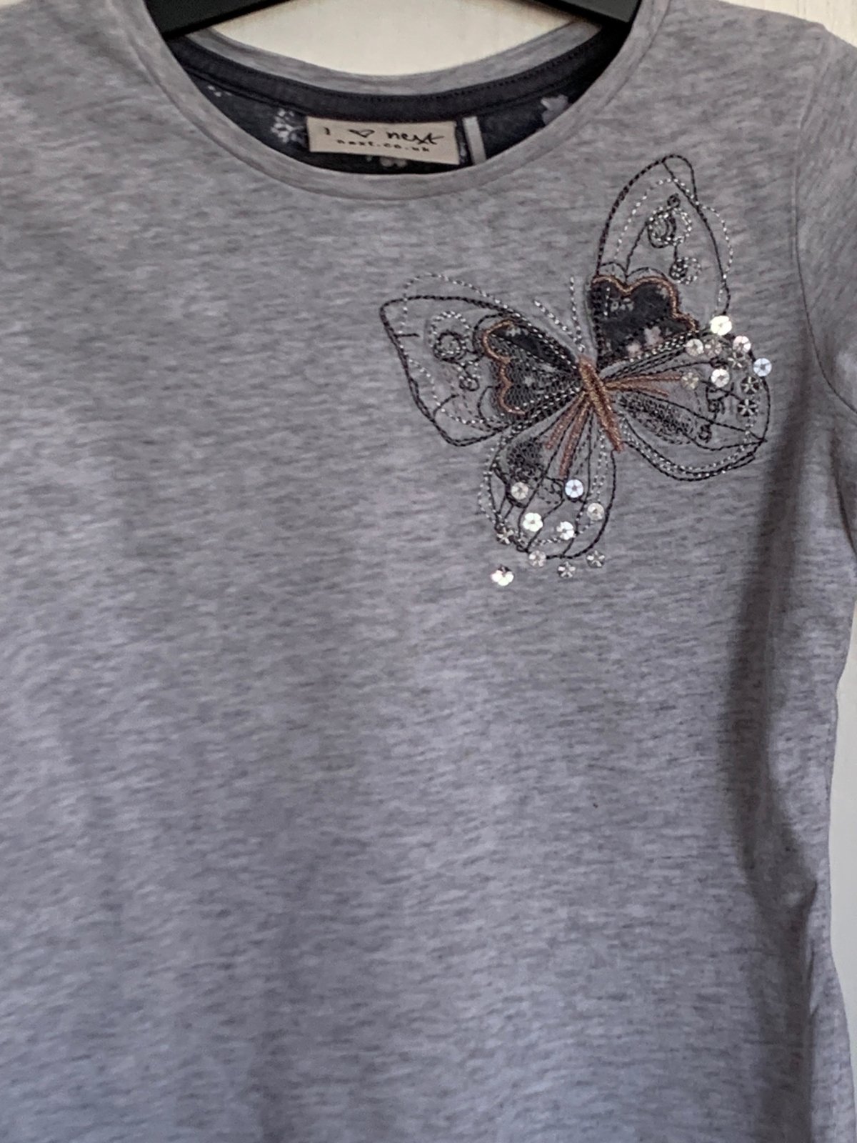 Next šedé tričko s motýlikom
