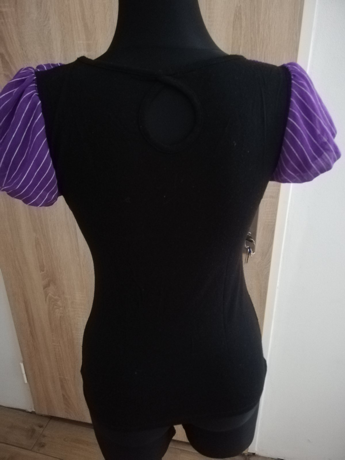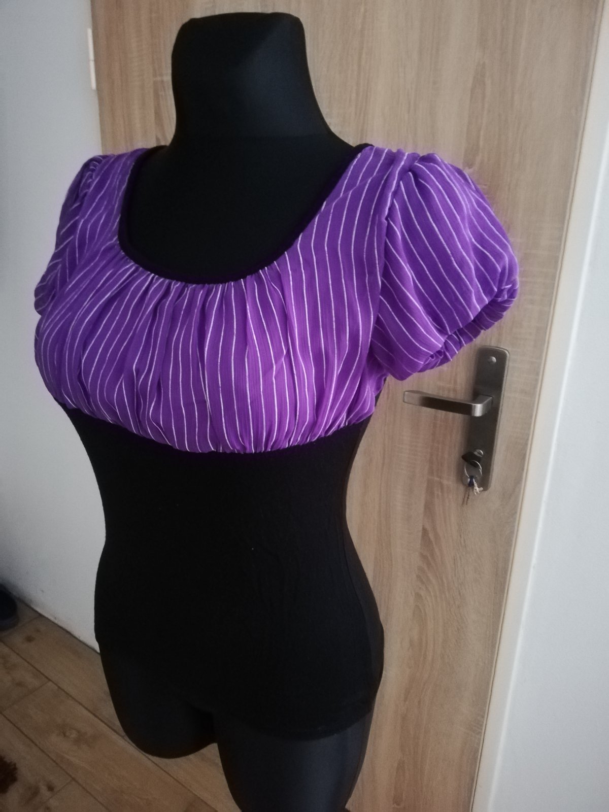 Predám krásne tričko s pekným výstrihom. Veľmi pekne ukáže na dámach, ktoré majú menšie prsia, lebo vyzerá také bohaté na prsiach. Rozmery: cez prsia v klude 80cm,ale je dosť elasticke, natiahne sa aj do 100cm, dlzka od pleca dole je 60cm.