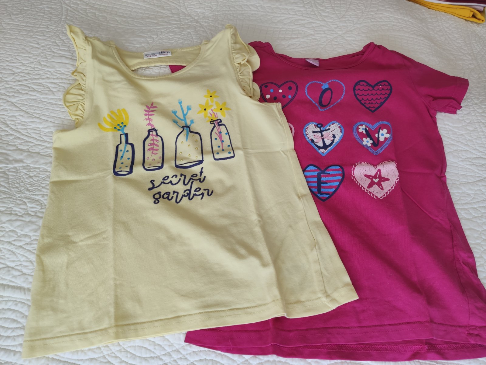 Predám nosené tričká vo veľmi dobrom stave veľkosť 122. Žlté značka Coccodrillo. Ružové Takko