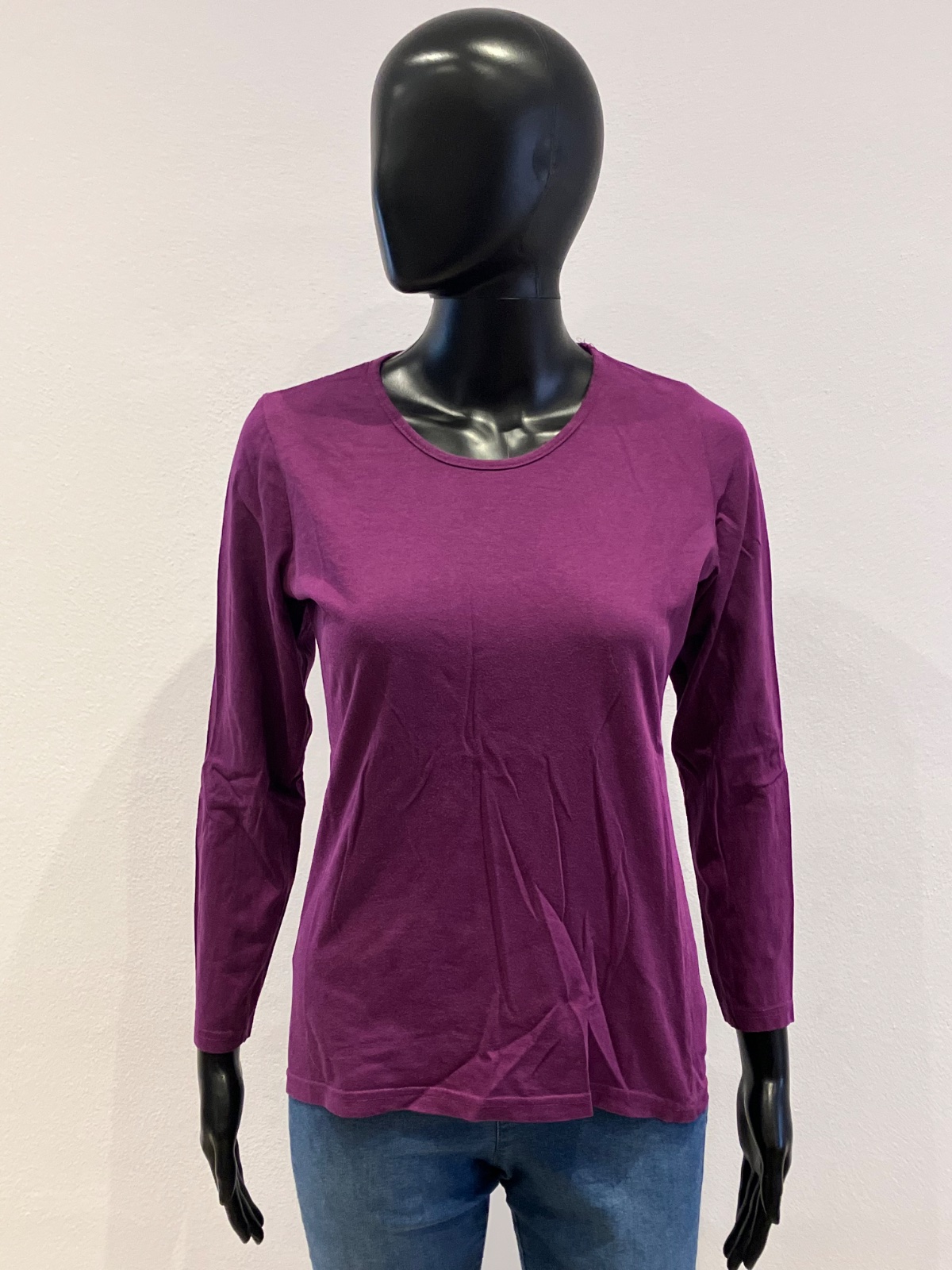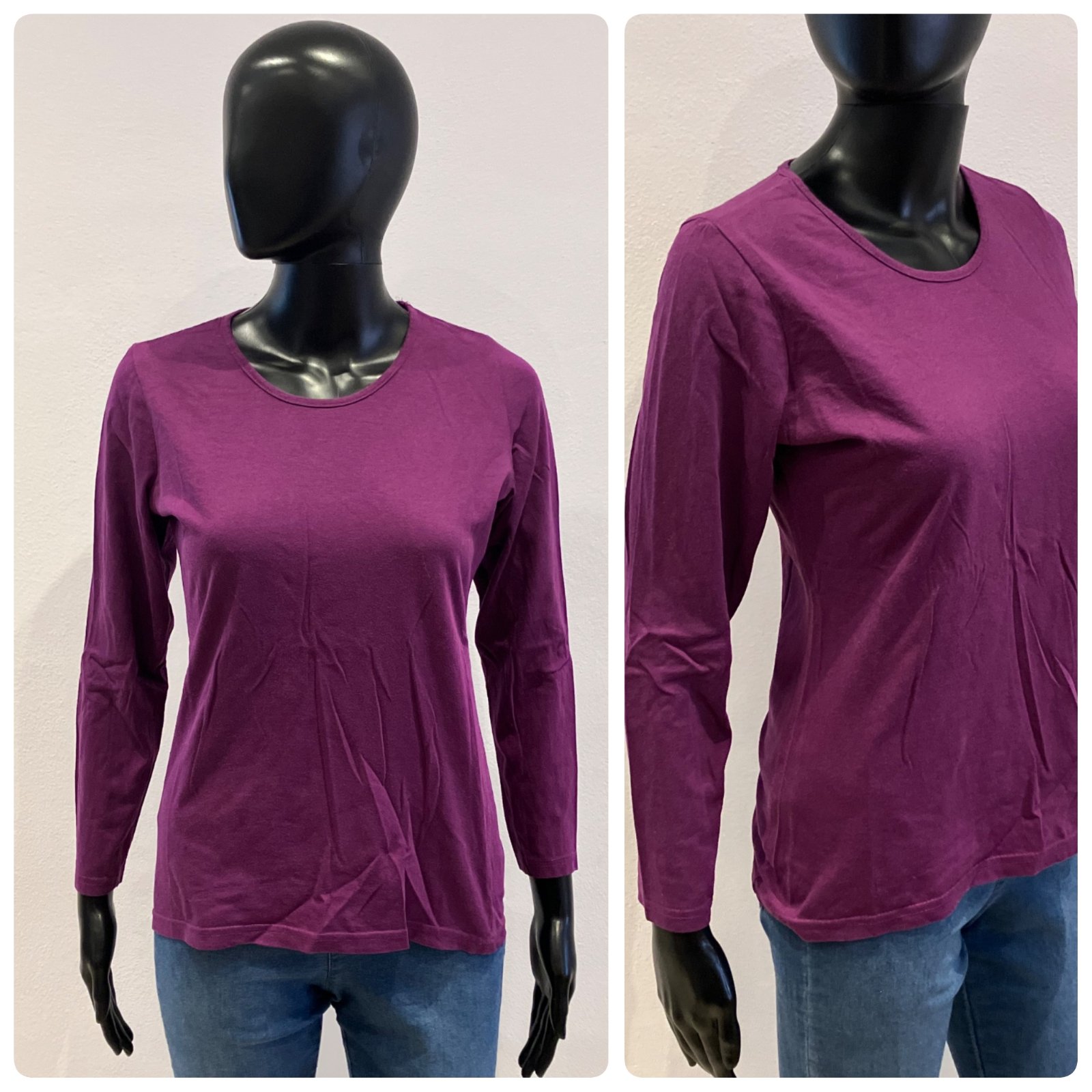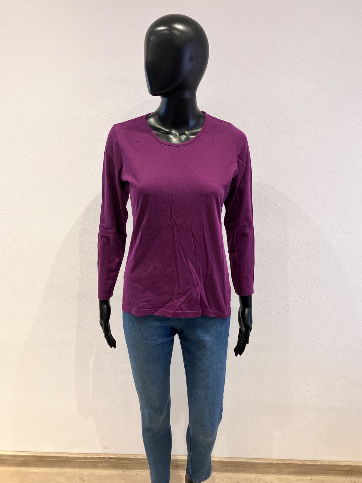 Dámske tričko s dlhým rukávom, jednofarebné, fiaľové, okrúhly výstrih, elastické, materiál 100%bavlna.