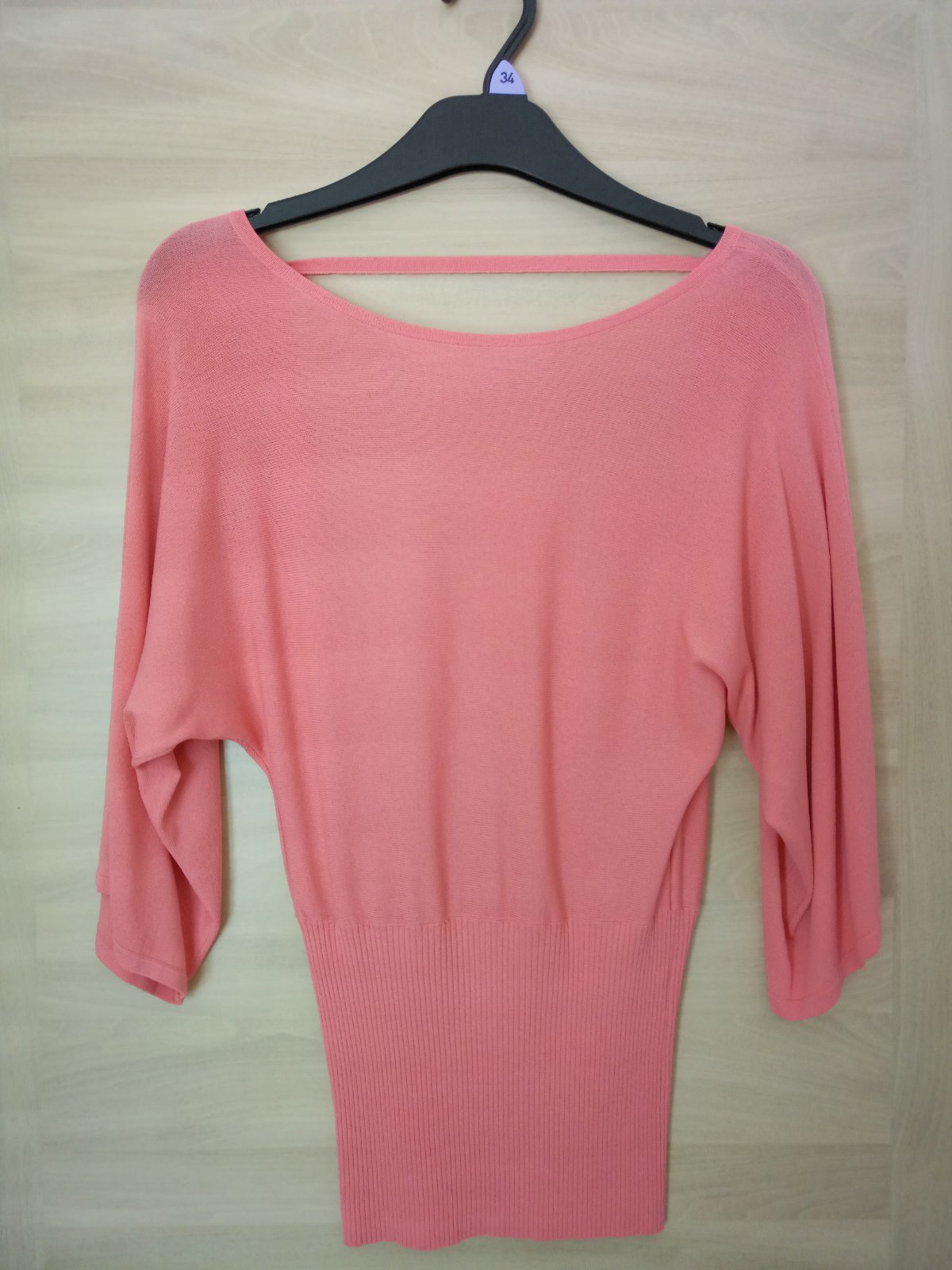 Koralovo ruzova farba, velkost XS ale je volneho strihu takze skor na S. Dlzka 63cm, sirka podpazusia 50cm