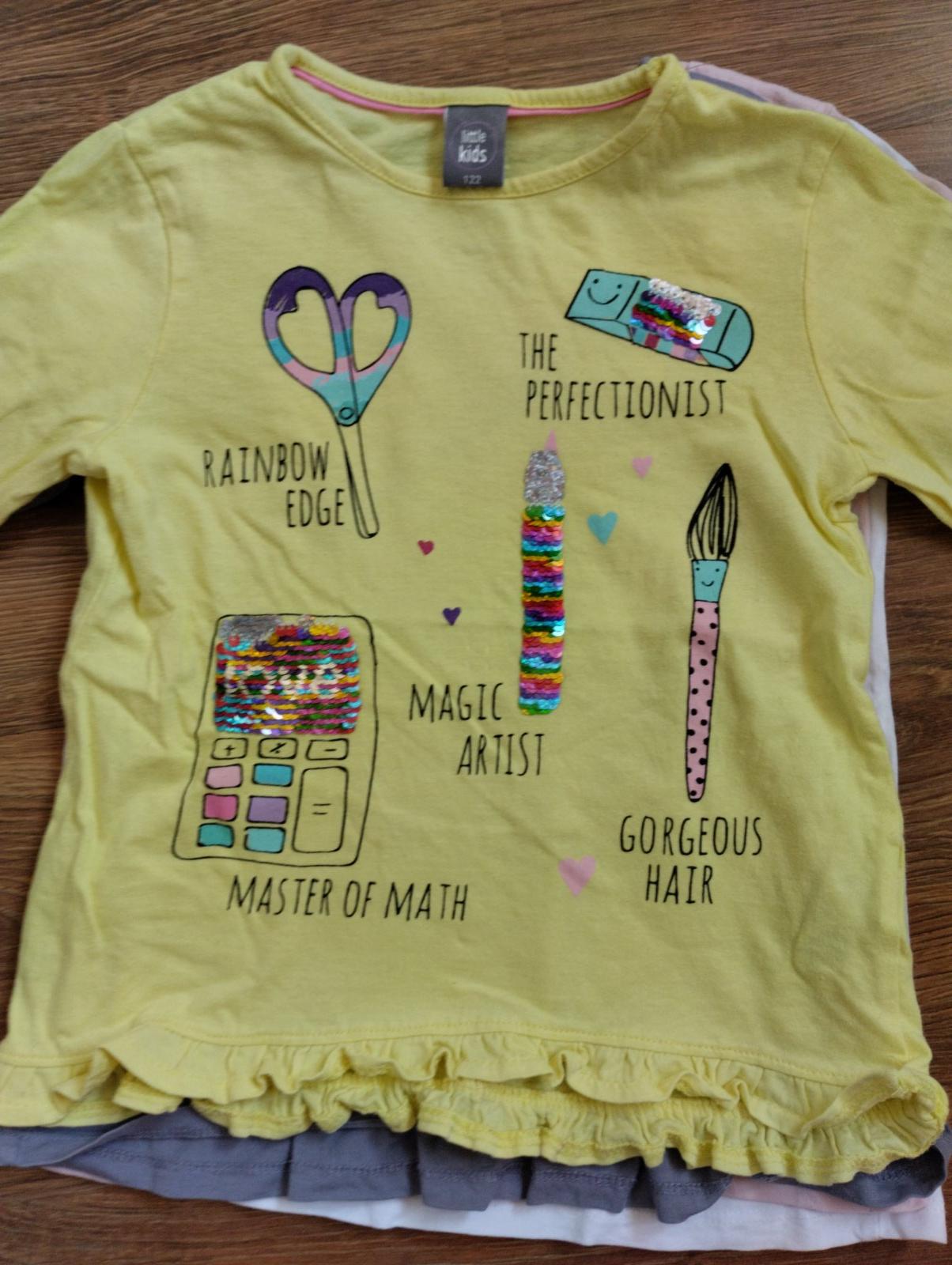 Nosene, zachovale. Jednotlivo 1,5 E. Tyrkysove PAlomino - vel. 122, dlzka 44 cm, obvod pod pazuchami 2x29 cm, rukav 48 cm. Zelene H&M - vel 122/128, dlzka 48 cm, OPP 2x 31 cm, rukav 41 cm. Oranz...