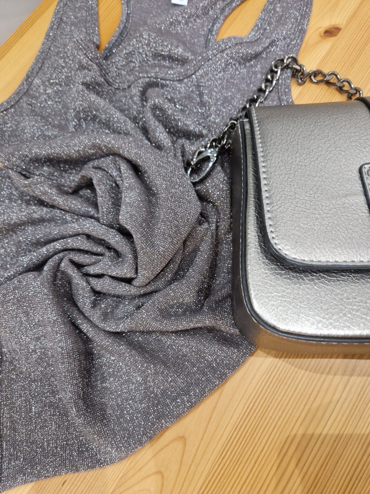 Dámske tielko, pružné pleteninové, stav nového, 2-3x oblečené. Farba sivo strieborná, veľkosť uvedená 12/L, miery: dĺžka 70cm, špp 37cm x2 /merané v kľude/. Klikni na profil, viac inzerátov v ponuke do 5€. Inzerát je aktuálny do zmazania.