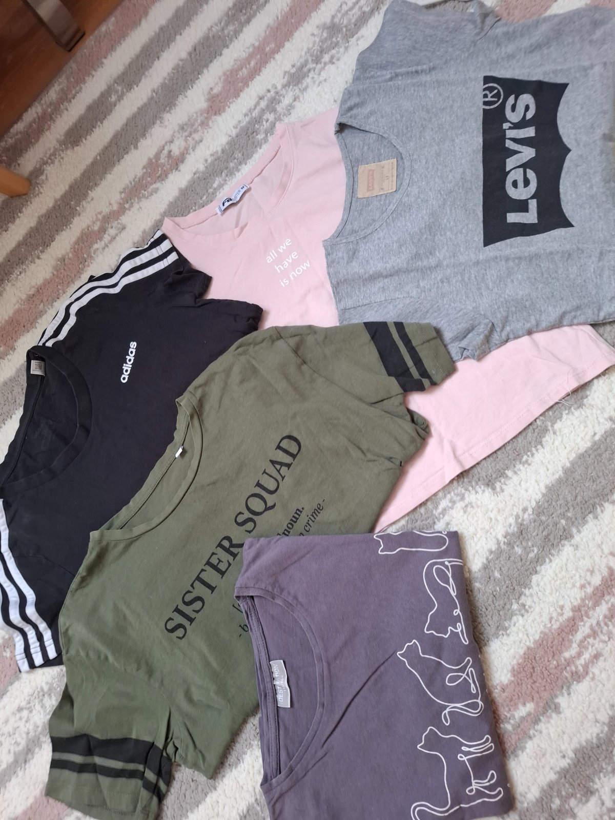 Mix tričiek, rôzne značky. 3x croptop, Levis a Adidas klasické tričká