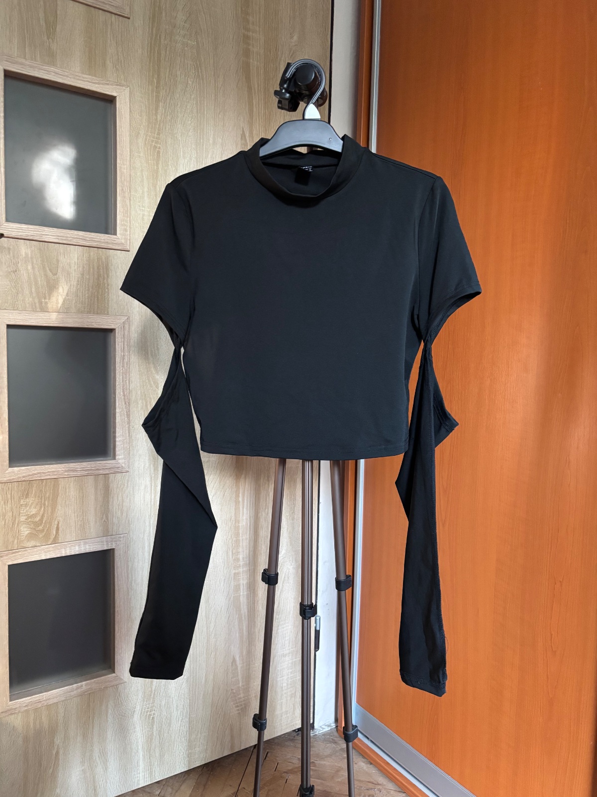 Čierne tričko / crop top s dlhými rukávmi s výrezmi. Takmer nenosené. Veľkosť M.
