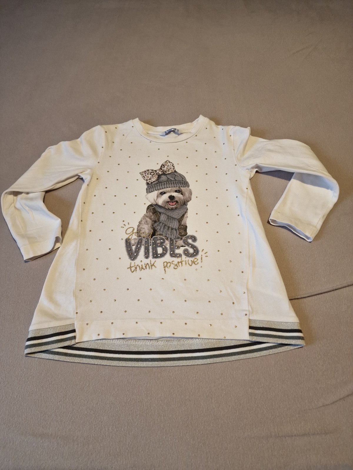Predám biely dlhorukavovy top s flitrovanym obrázkom značky Mayoral, veľkosť: 104