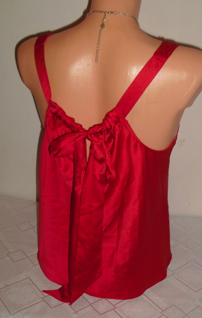 predam nadherny jemnucky kvalitny satenovy topik, raz oprany, cervenej farby . znackovy vs, velkost uvedena s, ale ide universalne aj na s/m, m, m/l. nosi sa navolno na postavicke alebo aj obtiahnuto kedy je sirka 51 cm x 2, dlzka cca 59 cm, v zadu sa lubovolne podla postavicky zavazuje na maslicku.
