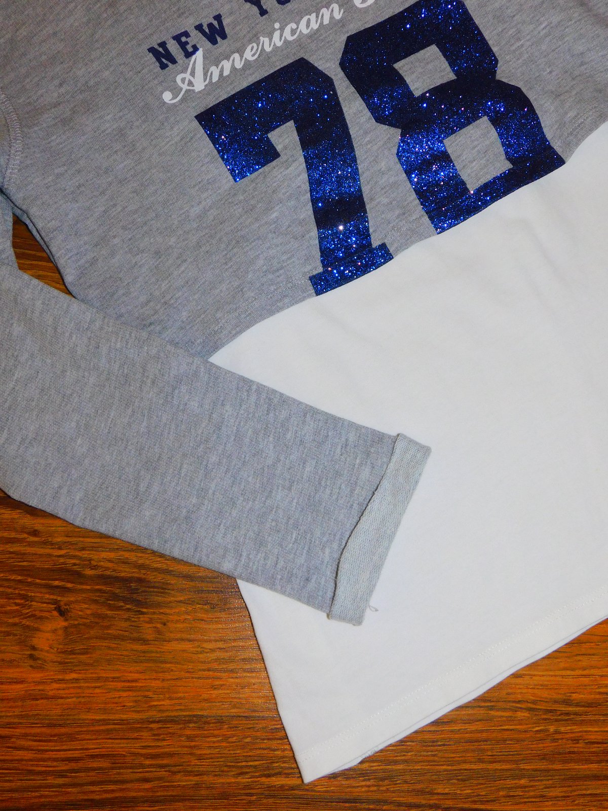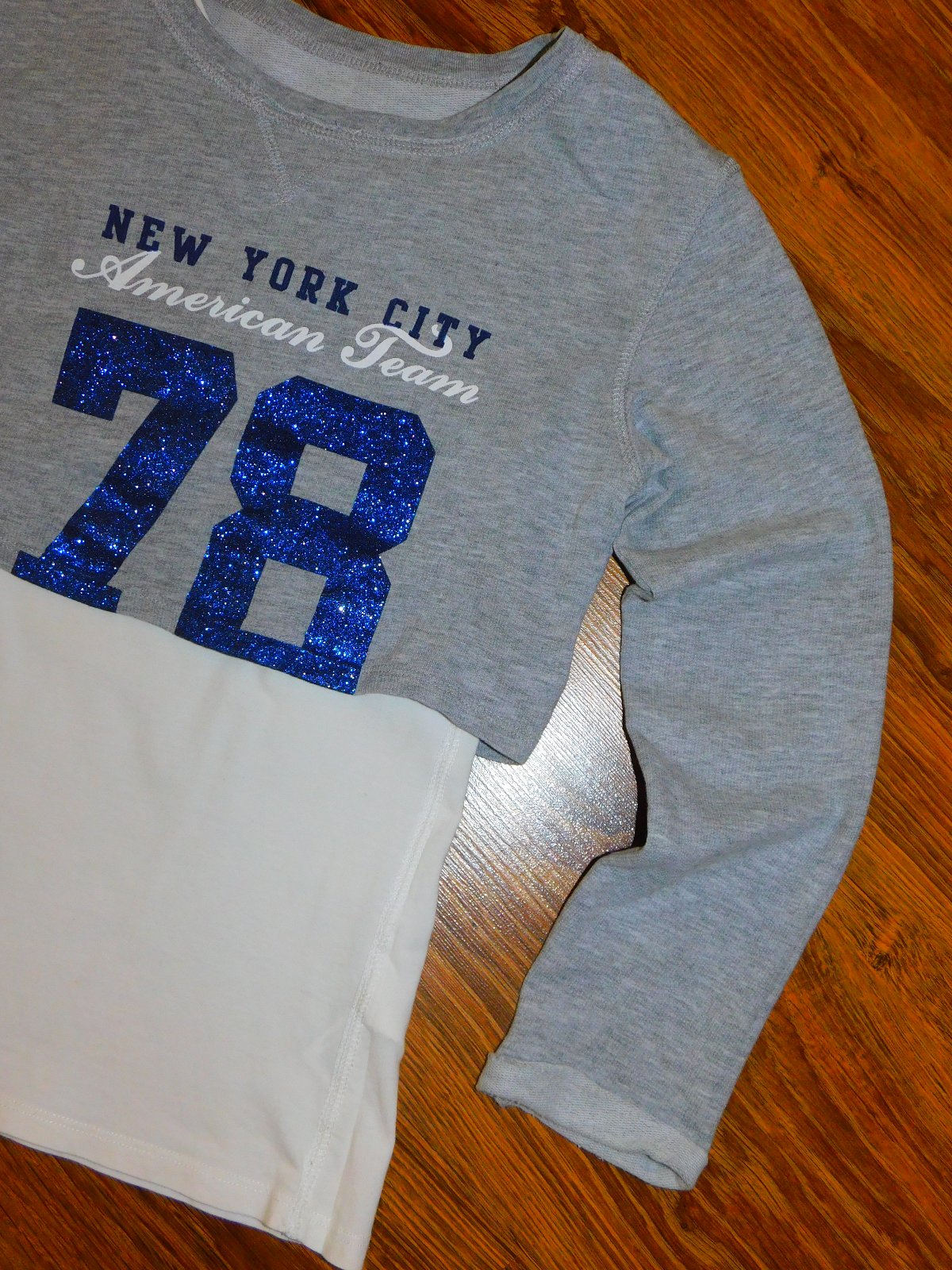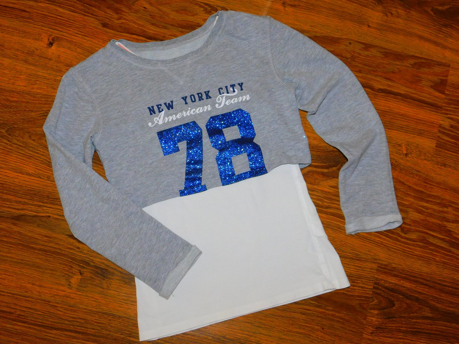 Frajerské tielko s mikinou 2v1. Tielko v smotanovej farbe, Mikina v melírovanej šedej farbe. Na prednej strane aplikácia. Čísla sú trblietavé.
