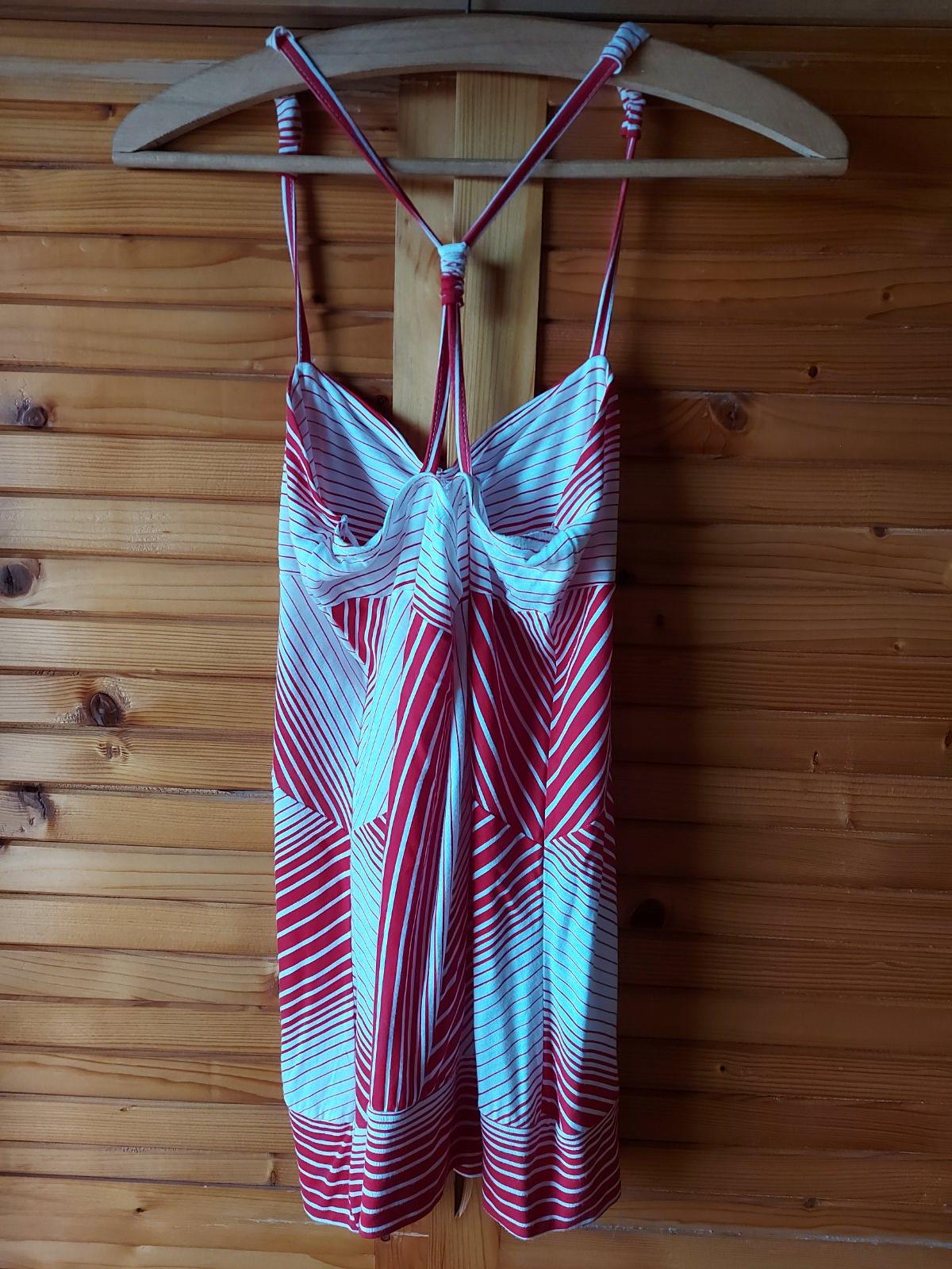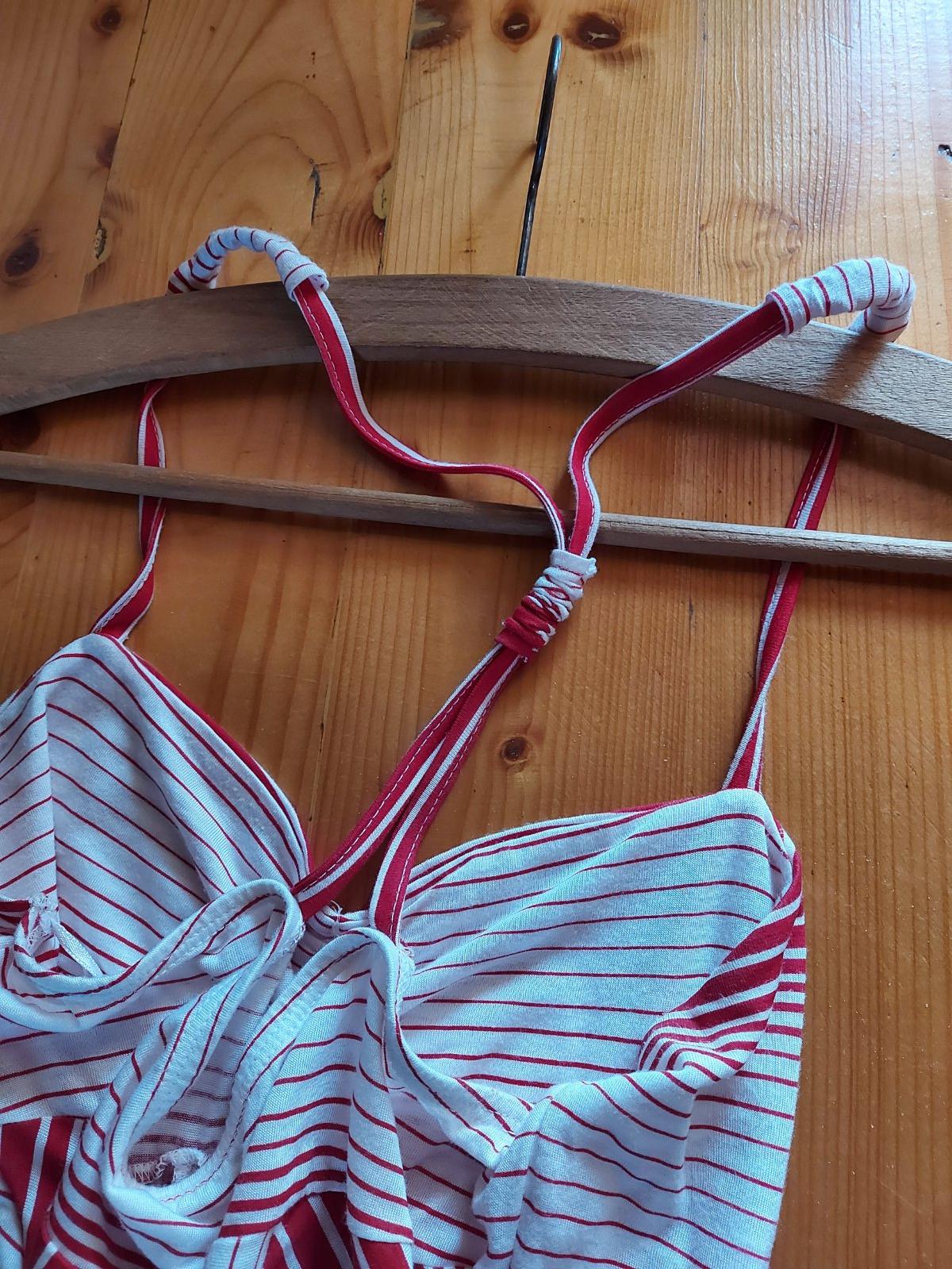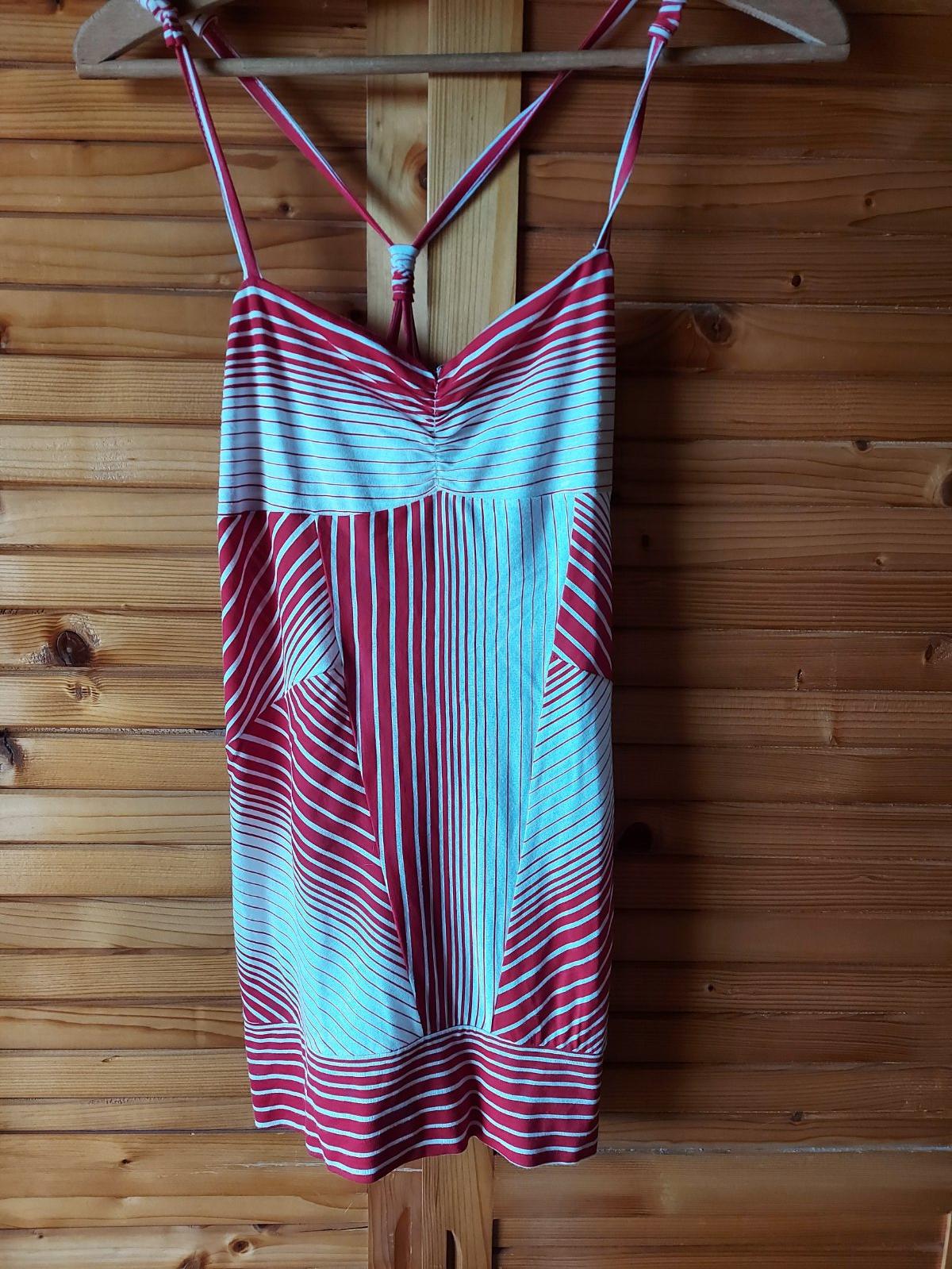 Letný top na ramienka červeno biely, S/M, voľný strih, š. pod pazuchami - 40,5, dĺžka - 50, elastické