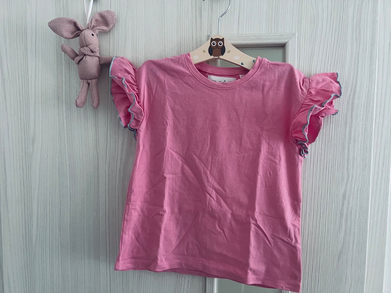 Ružové tričko Zara, veľ. 110, vyskúšané, ešte má šnúrku zo štítku, dostali sme, ale bolo hneď malé