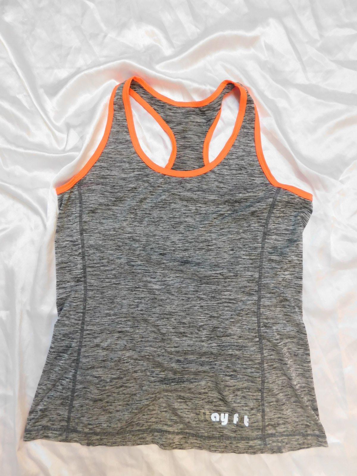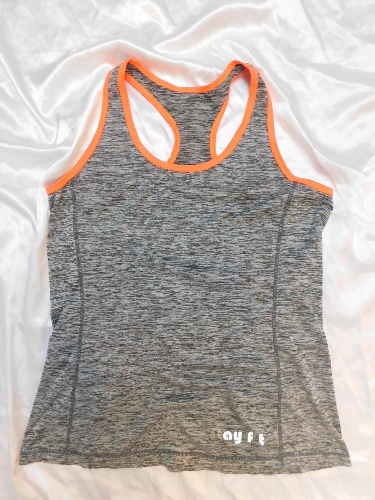 Damske fitnes tielko šedej farby,kontrasne lemovane. super stav. se36